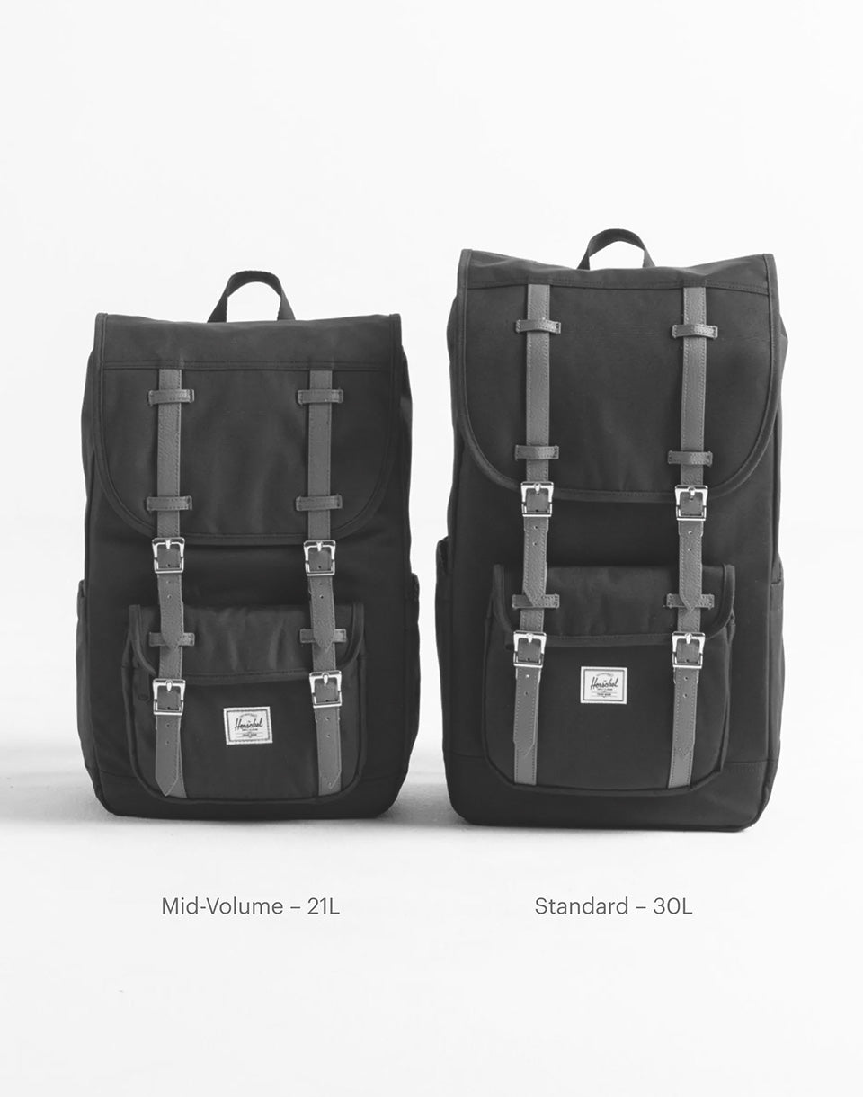 Herschel Supply Little America Mid-Volume - A smaller version of the versatile EcoSystem™ 100% recycled polyester urban backpack that offers an equally large, padded fleece sleeve for a 15"/16" laptop in addition to its smaller size.