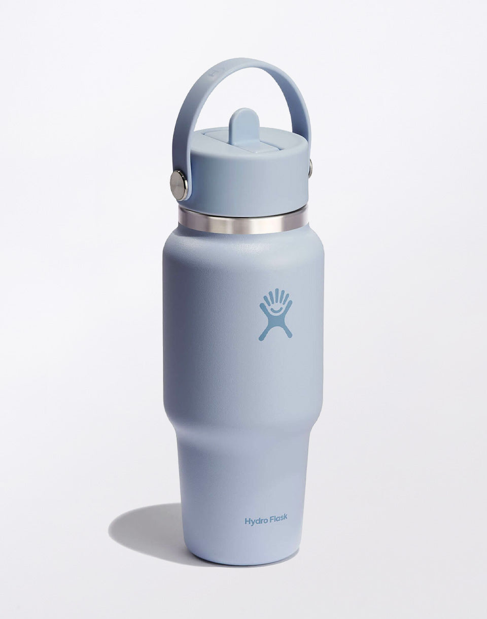 Bouteille de voyage à large goulot Hydro Flask avec bouchon à paille flexible 24 oz (710 ml) - un thermos en acier inoxydable durable et de qualité supérieure conçu pour les voyages en voiture et s'adapte à la plupart des porte-gobelets.