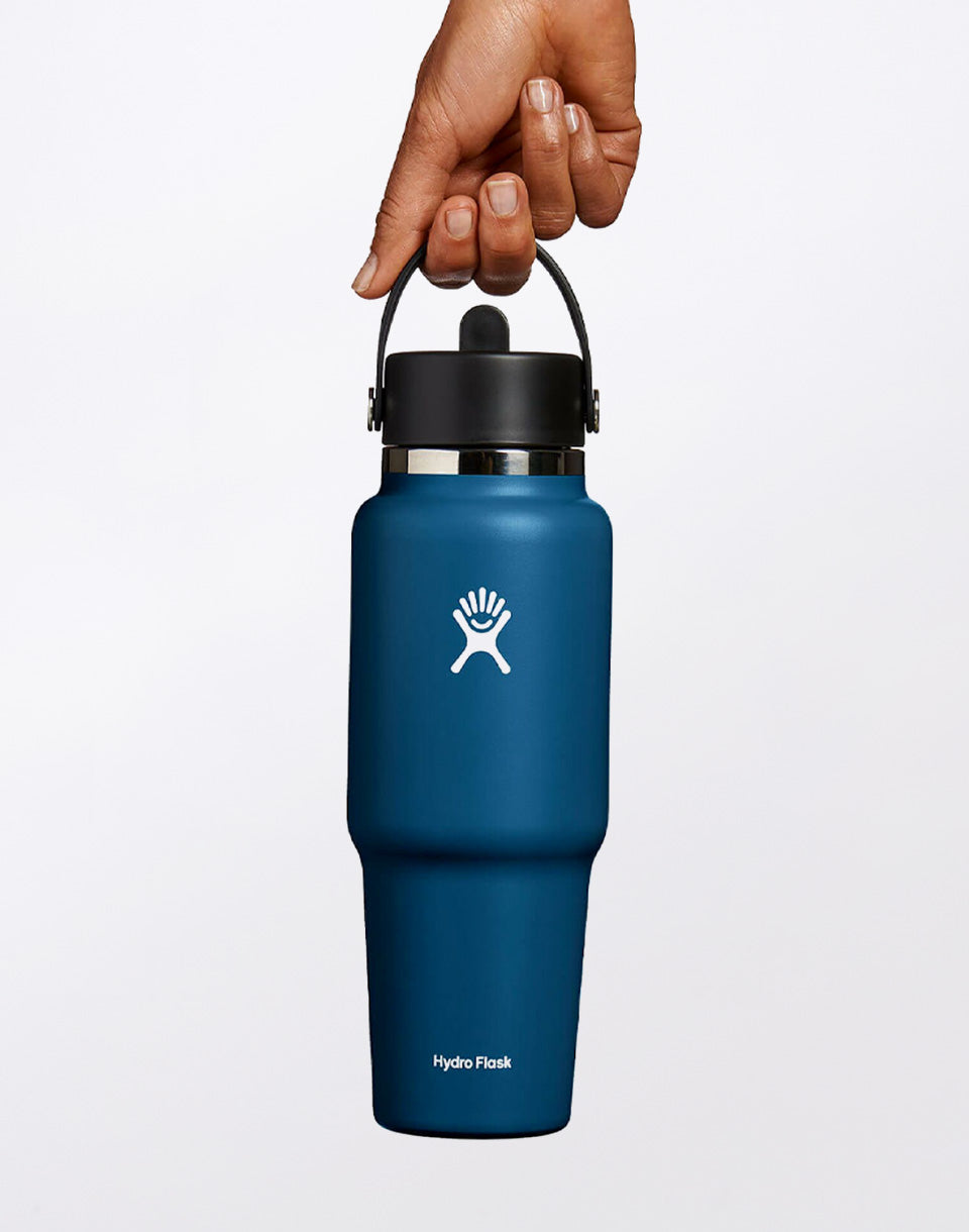 Bouteille de voyage à large goulot Hydro Flask avec bouchon à paille flexible 32 oz (946 ml) - un thermos en acier inoxydable durable et de qualité supérieure conçu pour les voyages en voiture et s'adapte à la plupart des porte-gobelets.
