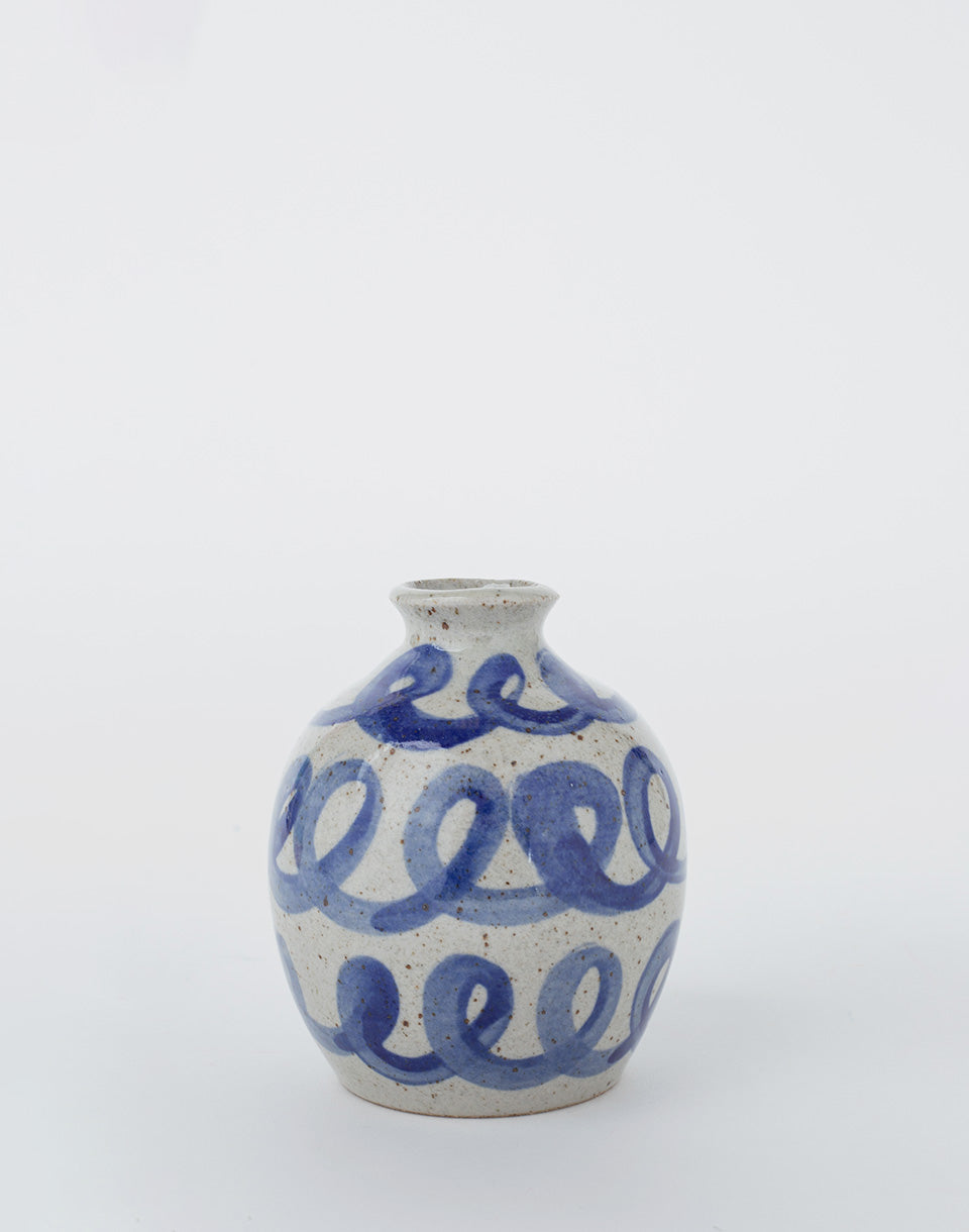 En août Company Petit Vase Blue Curls - un petit vase en grès brut avec peinture à la main, qui a été fabriqué à la main dans un petit atelier à Prague.