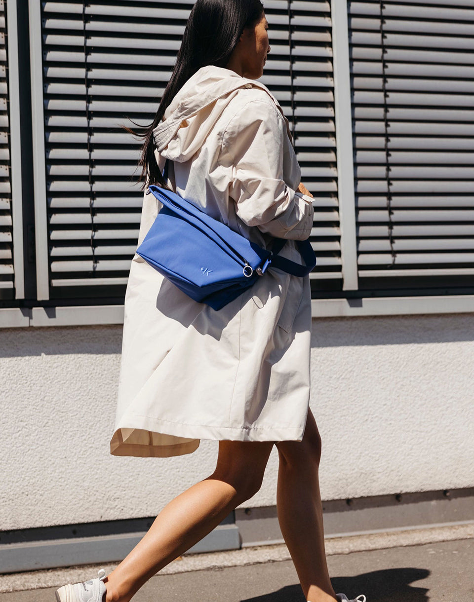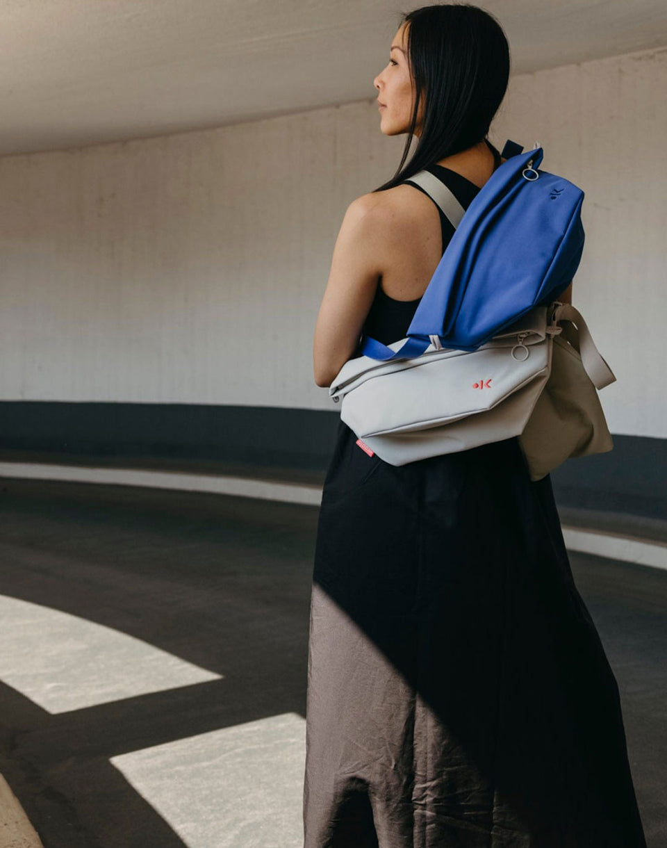 Kaala Taavi Sling Sac - un sac de rein en nylon recyclé élégant qui peut également contenir une veste légère grâce à son volume extensible. L'ensemble comprend également une sangle pratique avec laquelle vous pouvez transporter confortablement votre tapis de yoga ou tout autre tapis d'exercice.