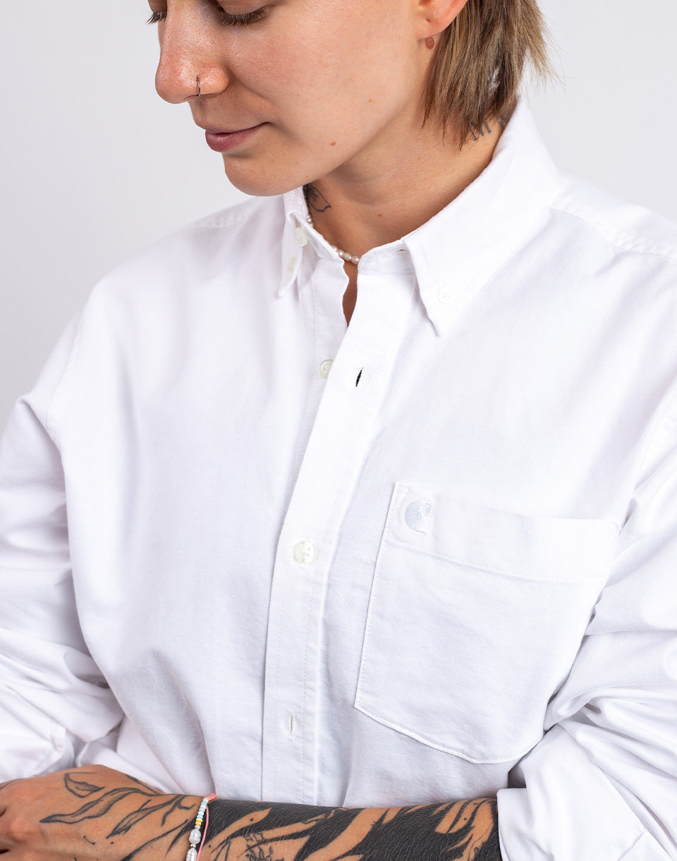 Carhartt Wip L / S C-Logo Shirt - Shirt élégant boutonné en matériau en coton léger avec poche de poitrine et logo CARHARTT WIP "C" sur la poitrine.