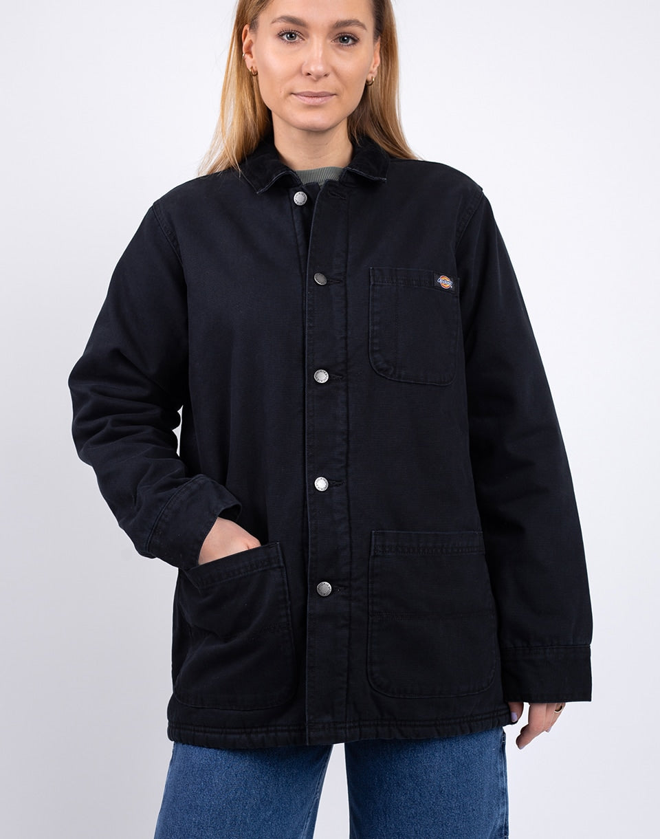 Dickies Tableau de corvée bordée de canard en pierre - une veste en toile durable avec doublure en polaire qui combine l'utilité des vêtements de travail avec un style intemporel.