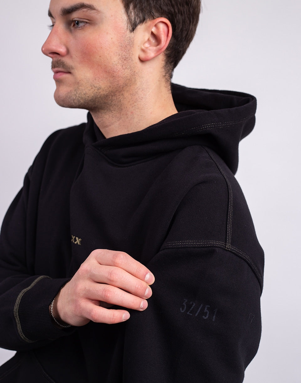 ONE OF XX Black Fleece Embroidered Hoodie - a deadstock hoodie for those who want more than just clothing.