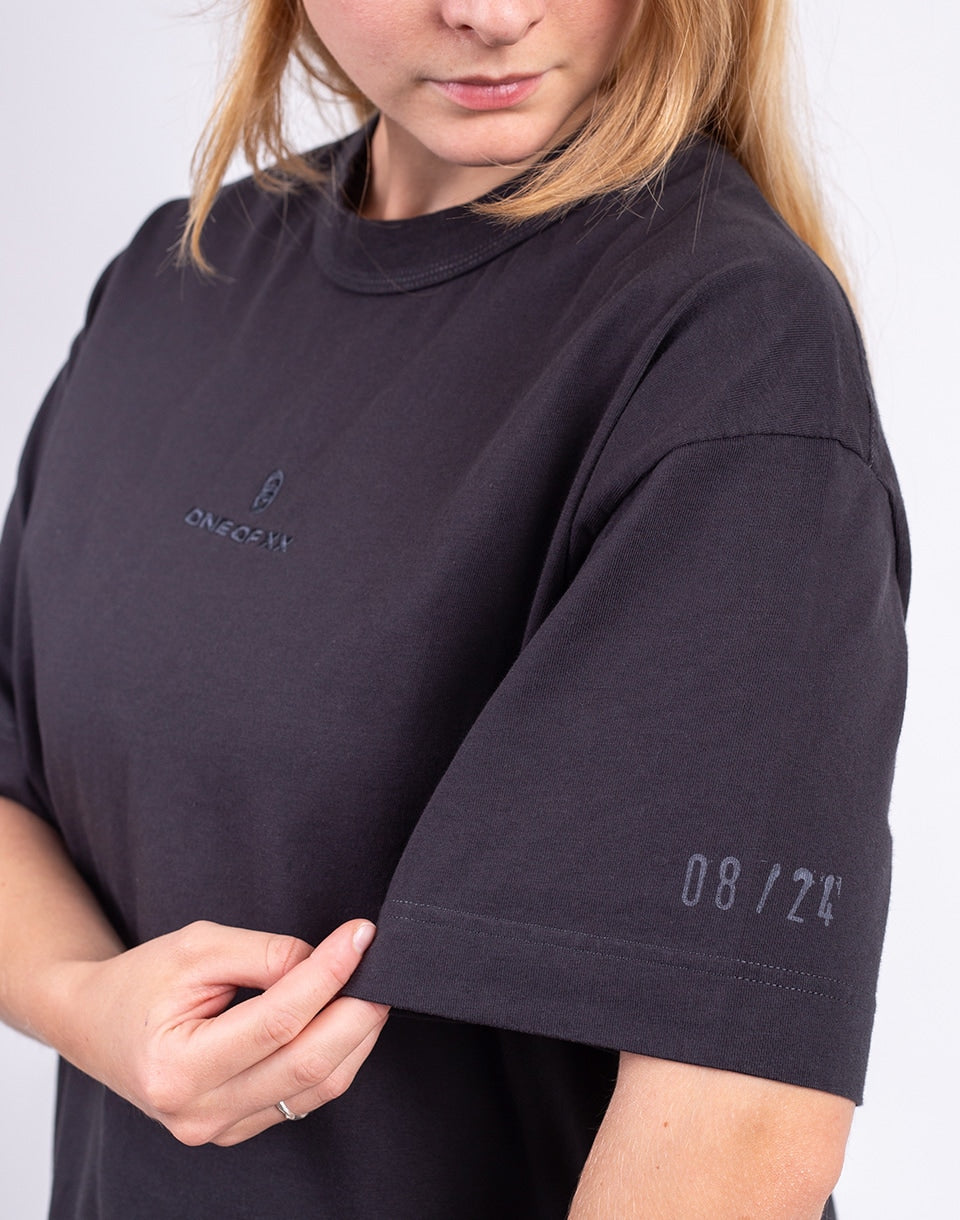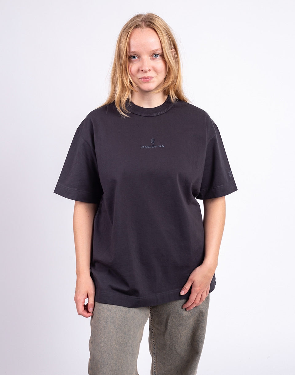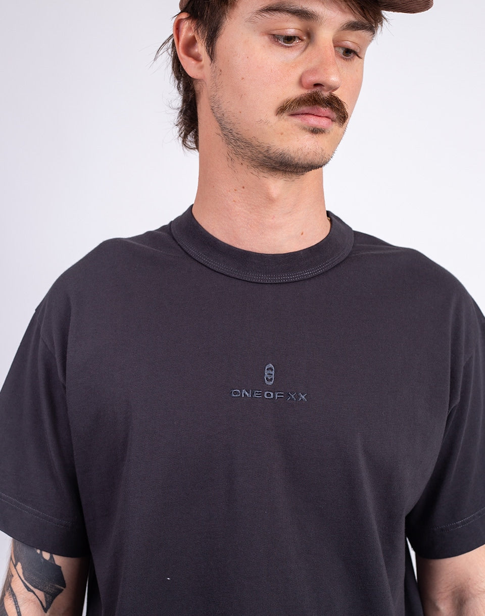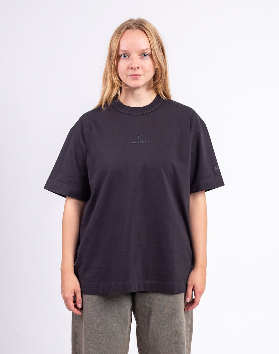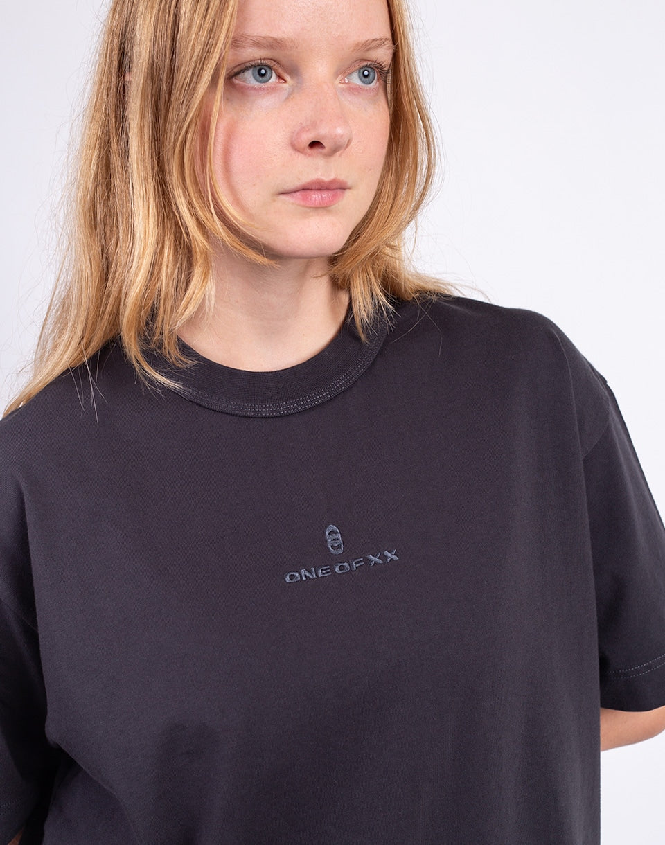 ONE OF XX Sheltersuit Logo T-Shirt - loose fit t-shirt with embroidered logo on the chest , which is one of 24 pieces made from deadstock of French luxury brands.