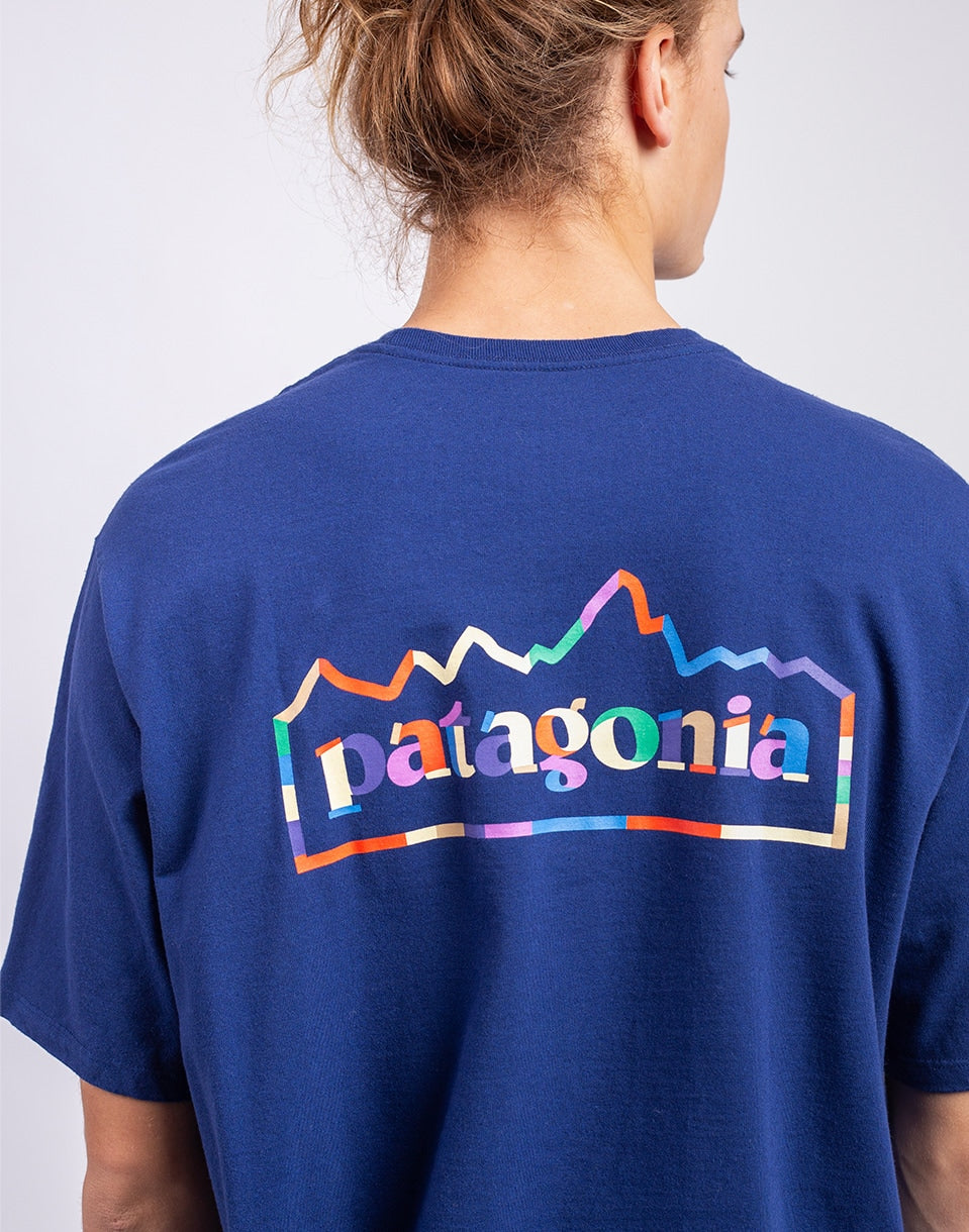Patagonia M's Unity Fitz Responsibili-Tee - T-shirt with a stylized Earth graphic and the message "we're all on this together" printed on soft knit fabric made from 100% recycled materials.