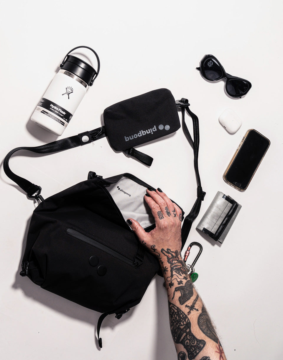 PINQPONQ AKSEL - Un sac rénal à nylon recyclé étanche qui possède un volume réglable, des éléments réfléchissants et un système à trois points pour un support stable pendant le vélo.