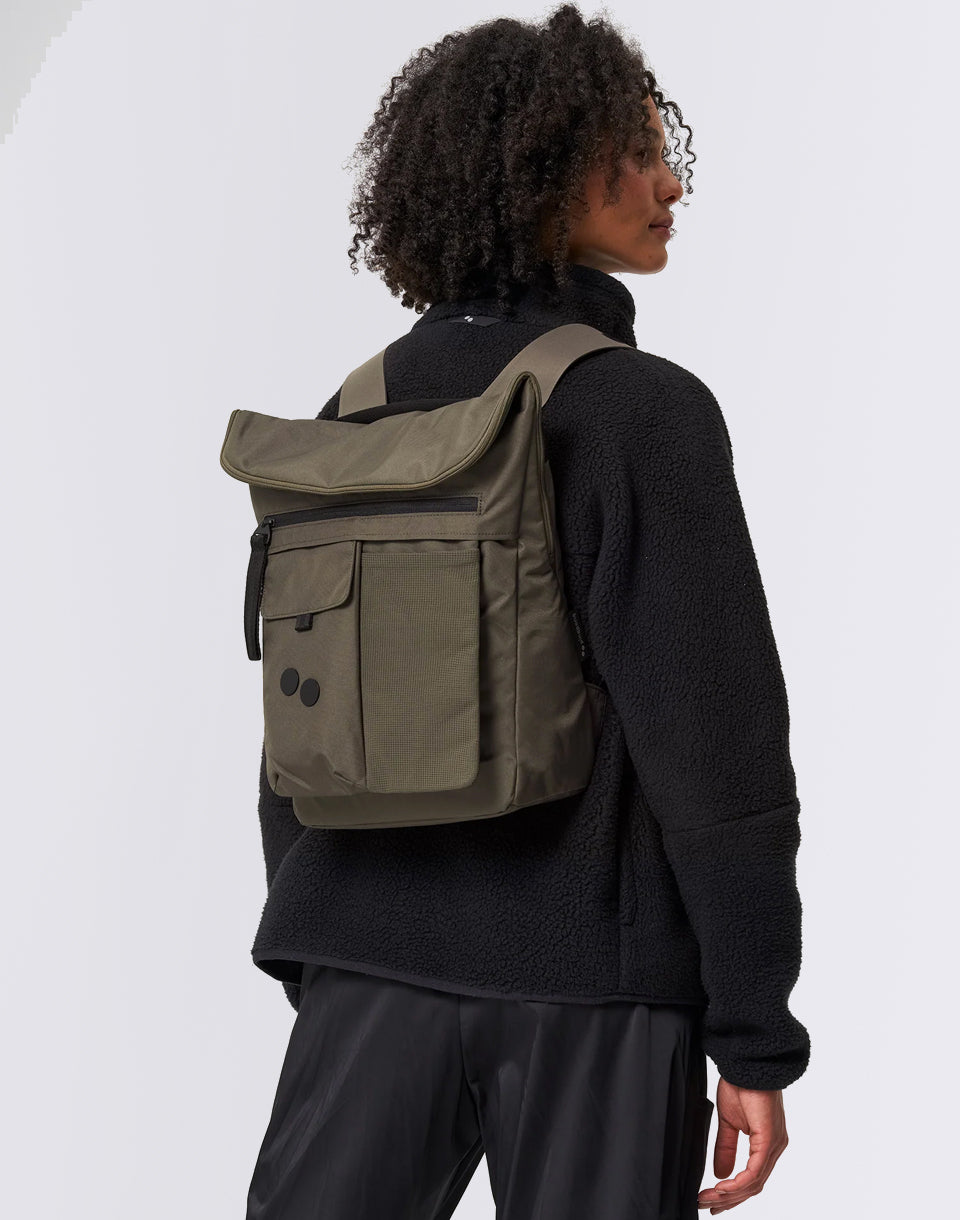 PINQPONQ KLAK - Un sac à dos urbain hydrofuge à eau fabriqué à partir de bouteilles d'animaux recyclées qui peuvent être portées sous forme de dessus et de dessus plié.