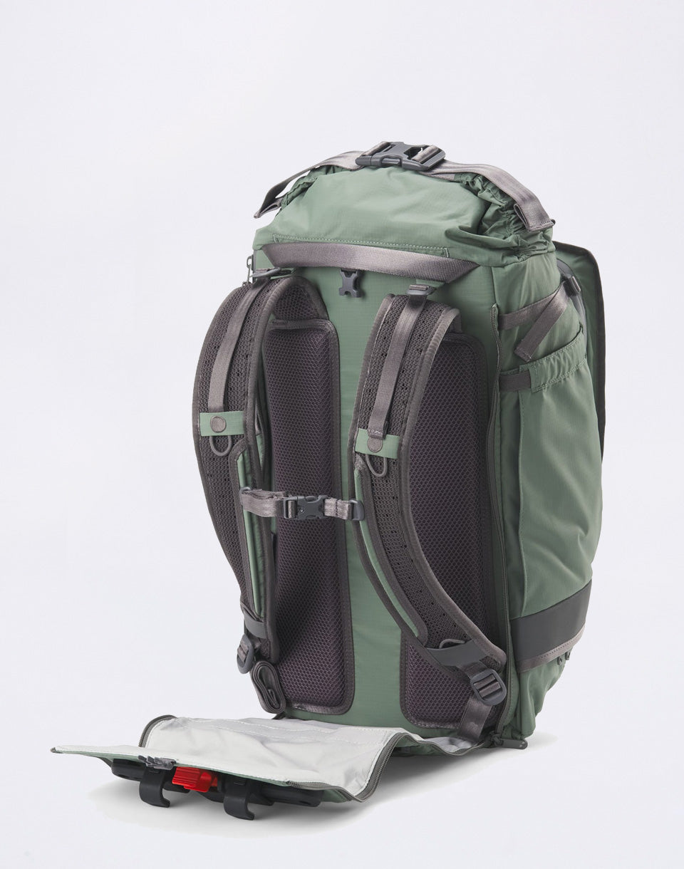 • Reinforced back with space for storing shoulder straps