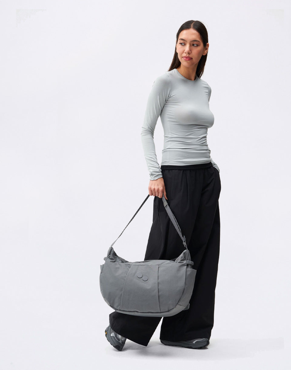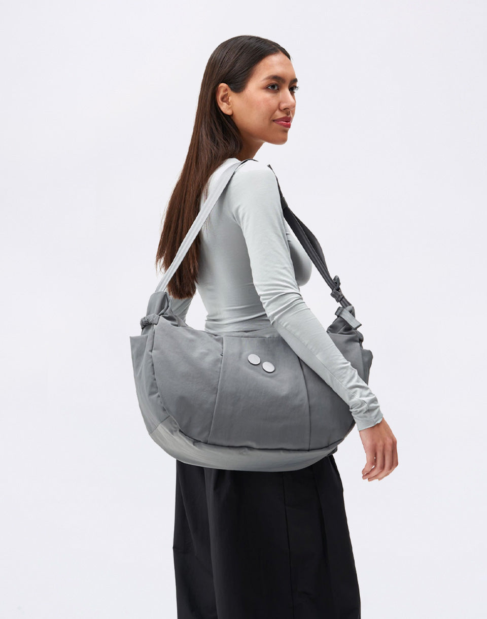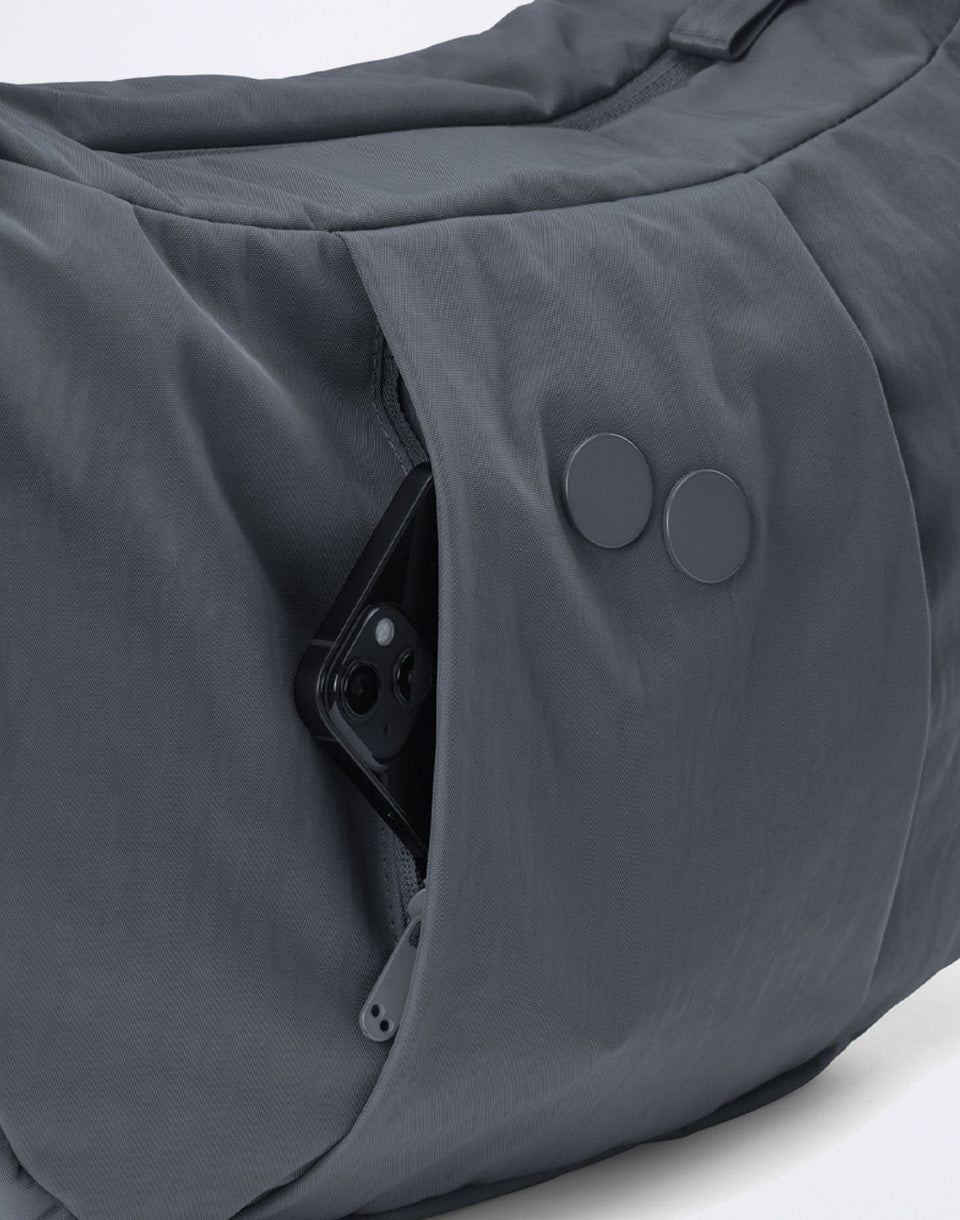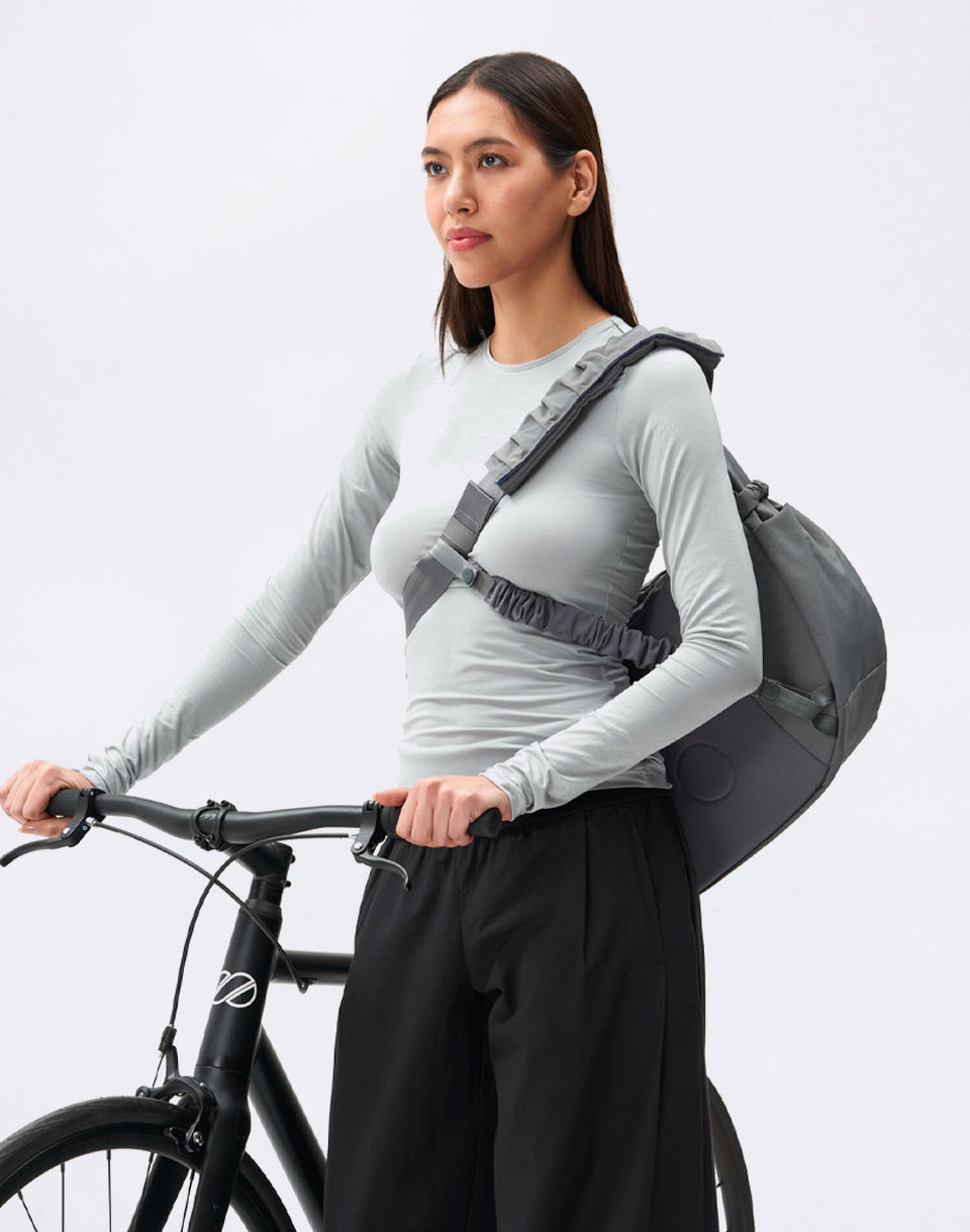 pinqponq Krumm Large - everything you need from a backpack, in an elegant handbag design. A practical piece that holds your laptop, drinks and other essentials, and thanks to the three-point system, it will stay exactly where it's supposed to when cycling.