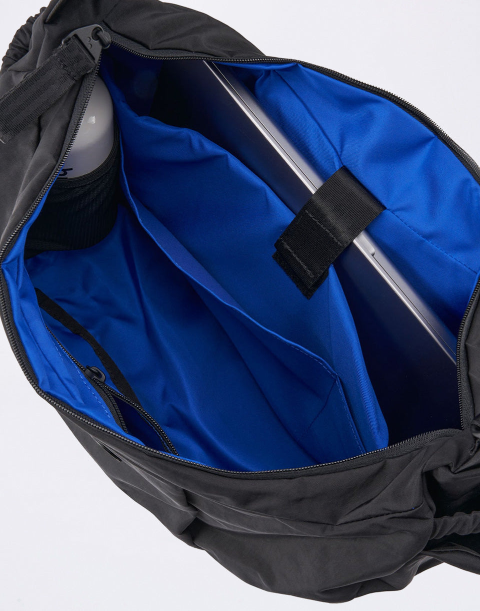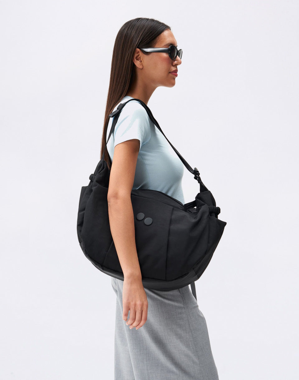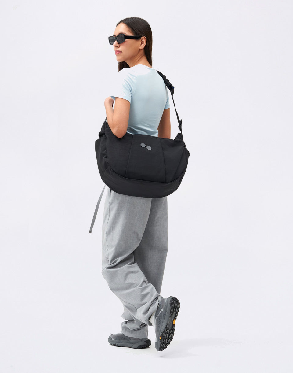 pinqponq Krumm Large - everything you need from a backpack, in an elegant handbag design. A practical piece that holds your laptop, drinks and other essentials, and thanks to the three-point system, it will stay exactly where it's supposed to when cycling.