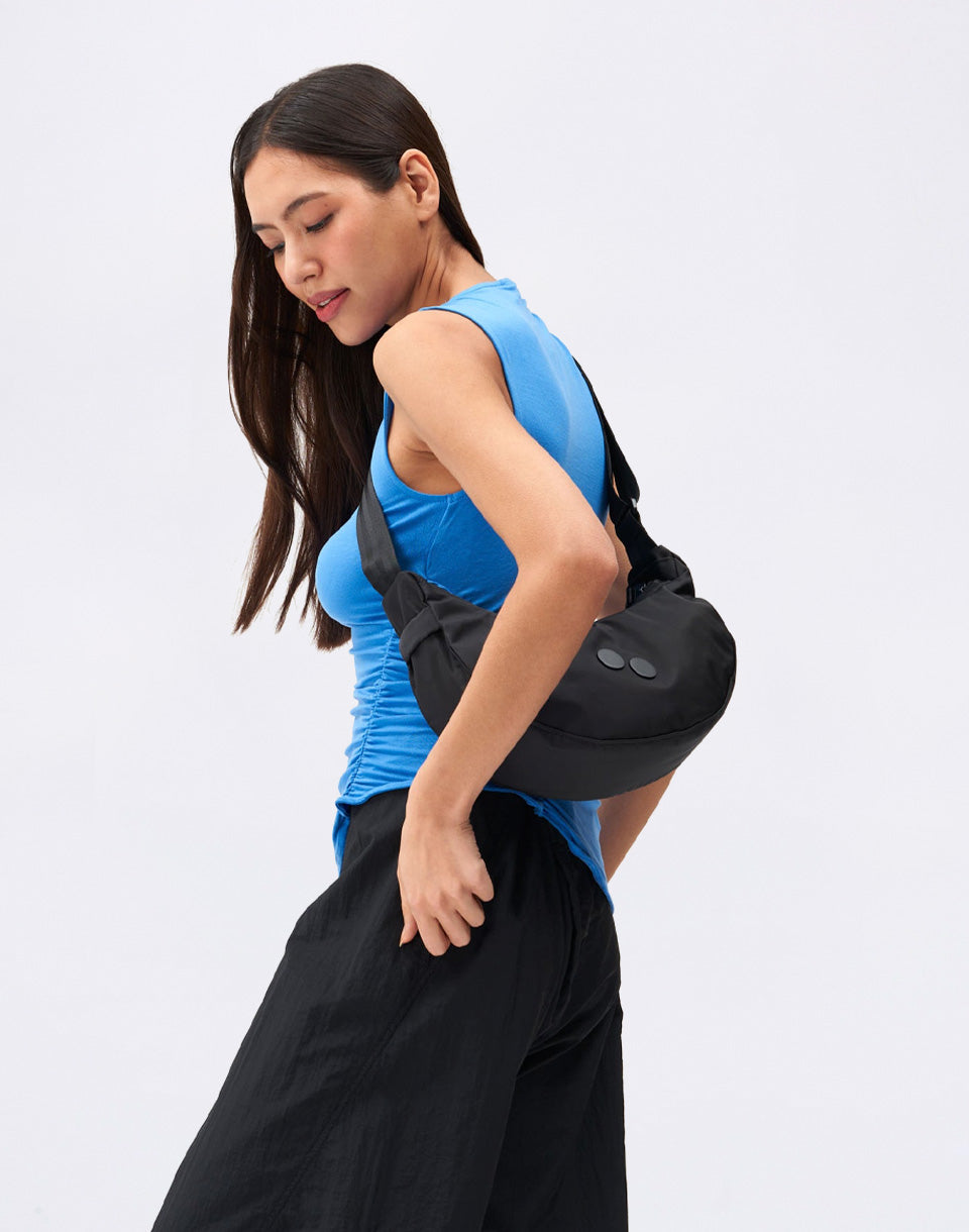 The Krumm Small by pinqponq is a stylish urban bag that combines minimalist design, practical articulation and sustainable production. It fits all your essentials - wallet, phone, smaller bottle, keys and a few extra things. Thanks to the cut, it sits comfortably on the body and works great both in the city and on a trip.
