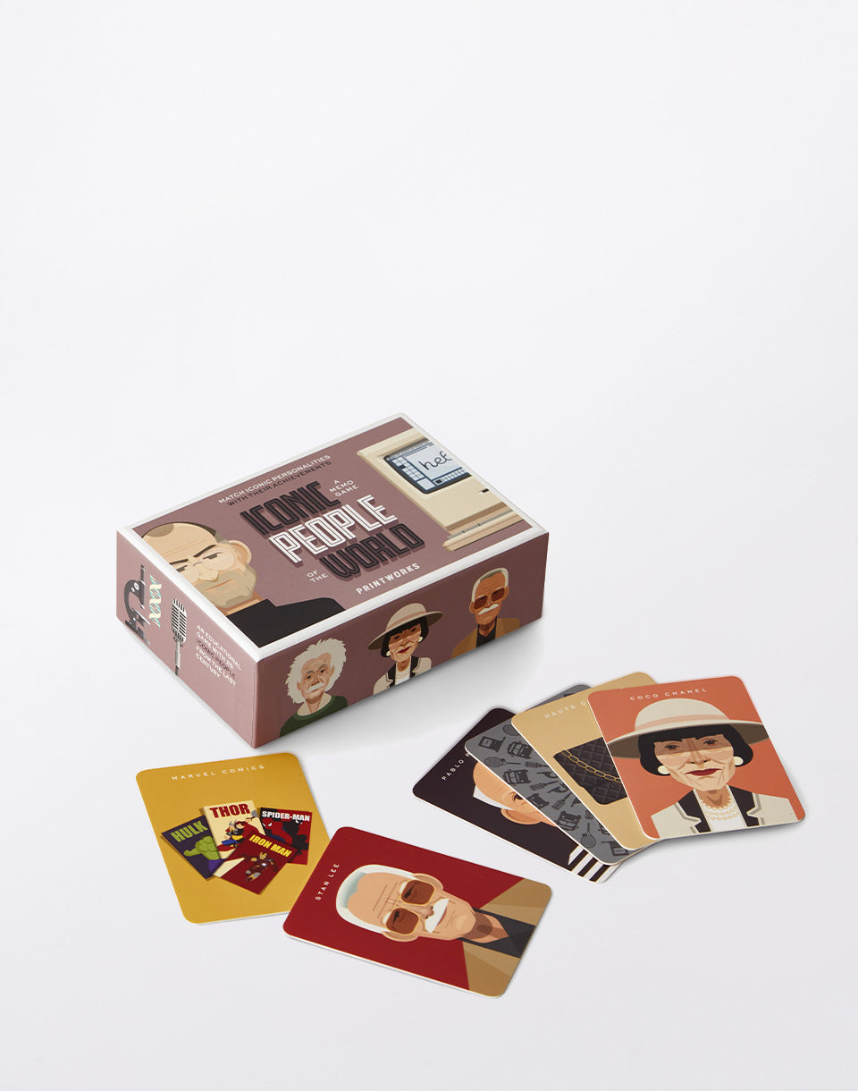Printworks Memo Game - Emblément des gens - un jeu de mémoire qui vous présente des personnes célèbres qui ont quitté leur marque. Le jeu présente 25 célébrités et leurs réalisations.