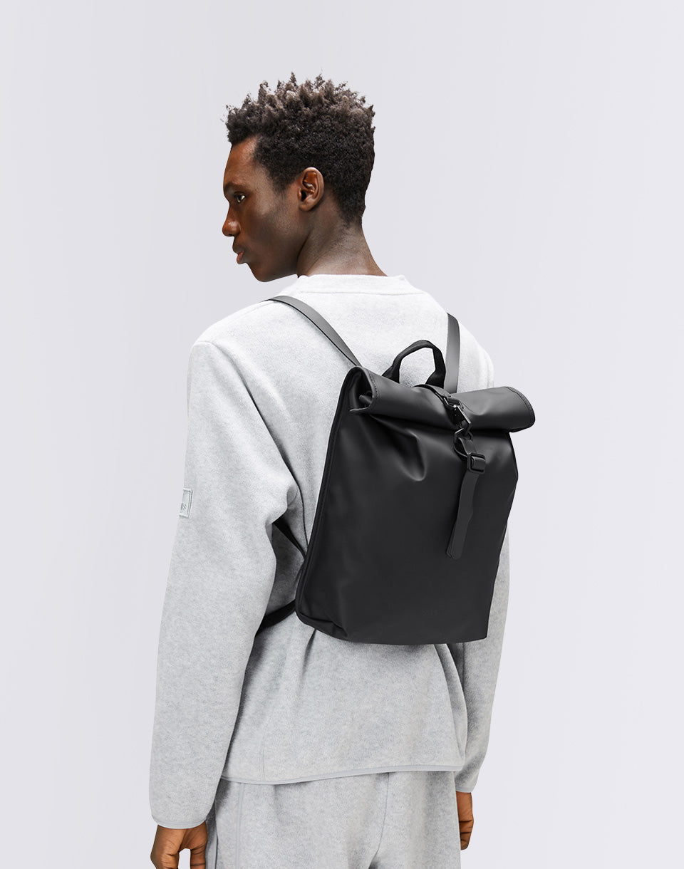 Rains Rolltop Rucksack Mini - Un sac à dos de la ville plus petite de l'étiquette danoise se réjouira de son matériau imperméable, de son dos rembourré et de son design minimaliste intemporel qui se divertit.