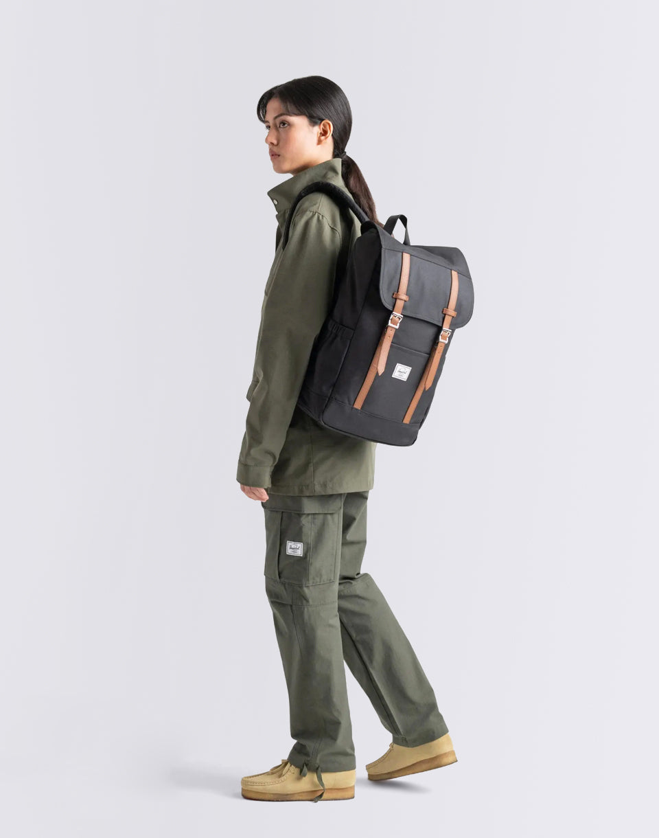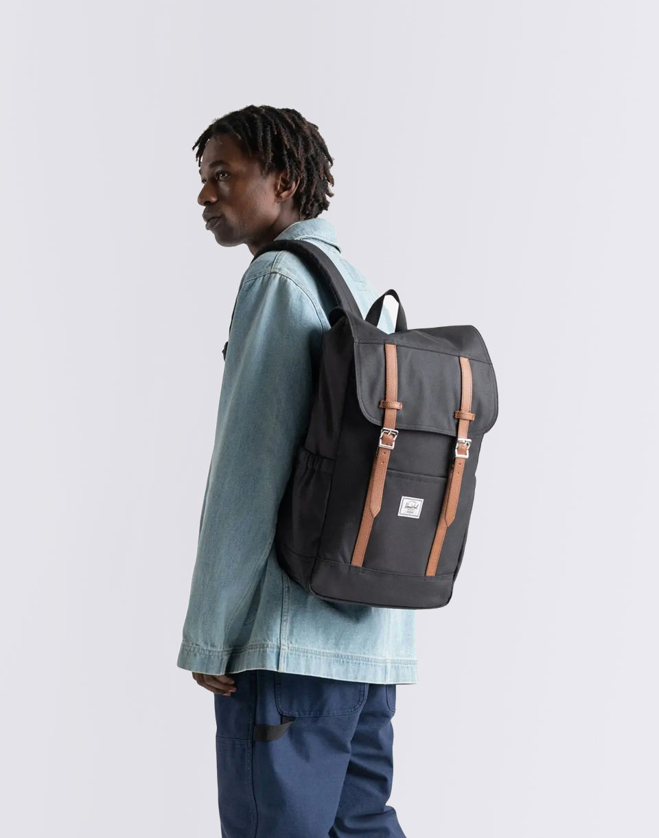 The Herschel Supply Retreat - Un petit sac à dos urbain à base de matériaux recyclés Ecosystem ™ à partir de bouteilles d'animaux de compagnie recyclées 100% qui offrent une manche en toison rembourrée pour un ordinateur portable de 15 "/ 16" en plus d'un design propre.