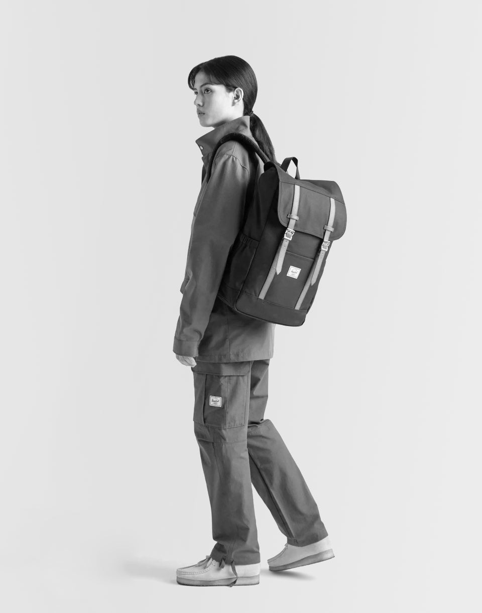 The Herschel Supply Retreat - Un petit sac à dos urbain à base de matériaux recyclés Ecosystem ™ à partir de bouteilles d'animaux de compagnie recyclées 100% qui offrent une manche en toison rembourrée pour un ordinateur portable de 15 "/ 16" en plus d'un design propre.