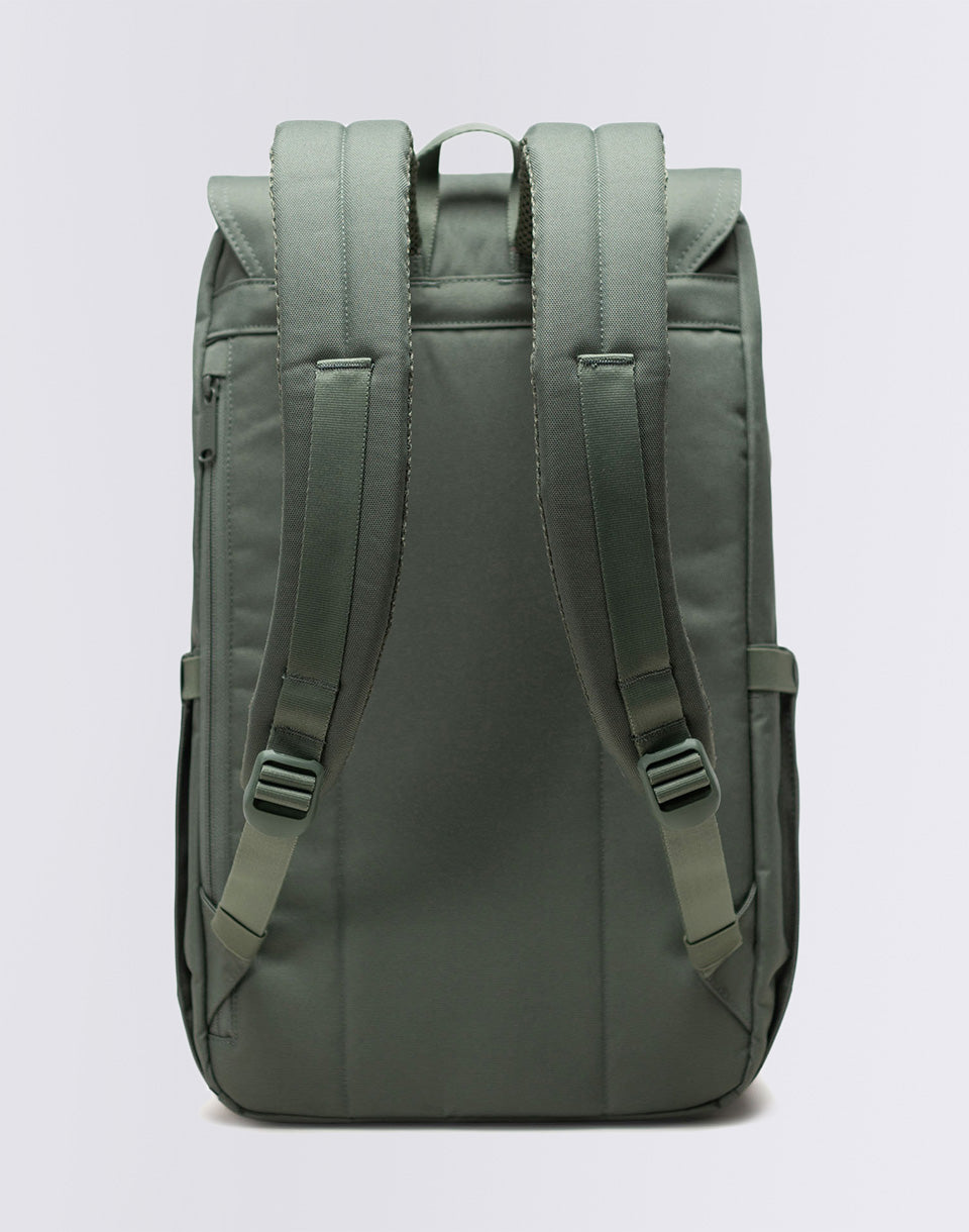 The Herschel Supply Retreat - Un petit sac à dos urbain à base de matériaux recyclés Ecosystem ™ à partir de bouteilles d'animaux de compagnie recyclées 100% qui offrent une manche en toison rembourrée pour un ordinateur portable de 15 "/ 16" en plus d'un design propre.