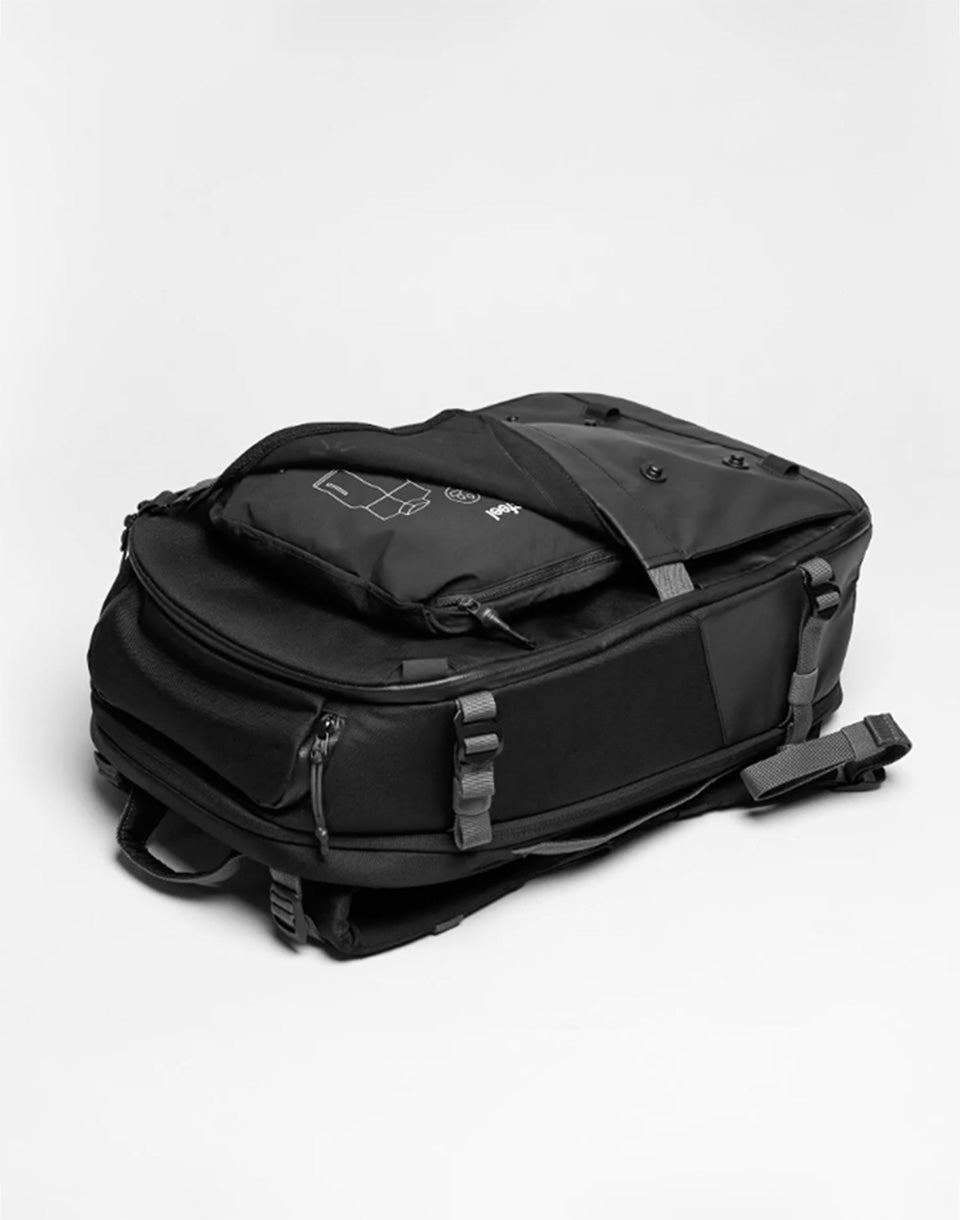 - Les accessoires supplémentaires peuvent être attachés en toute sécurité à l'avant du sac à dos avec des aimants Fidlock