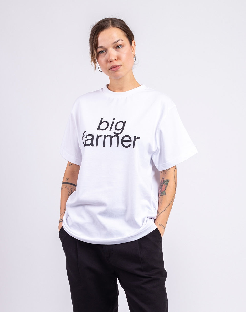 Service Works Big Farmer Tee - simple T-shirt in certified organic cotton with a print on the chest.