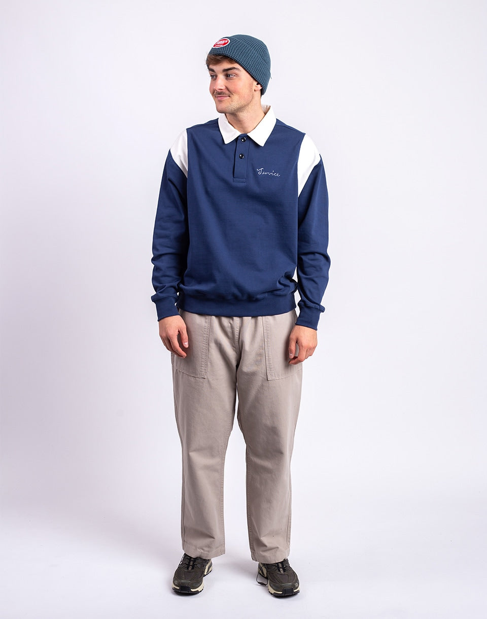 Service Works Bistro Polo - a lightweight sweatshirt with a shirt collar and a button at the neck, which impresses with its original design with a retro touch.