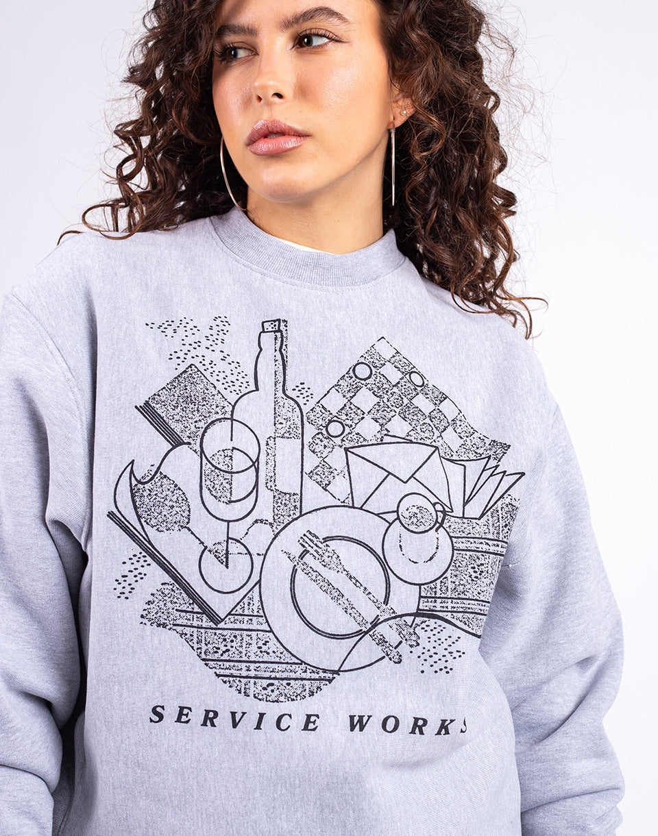 Service Works Frequent Flyer Crewneck - crewneck sweatshirt in soft organic cotton with a large print on the chest.