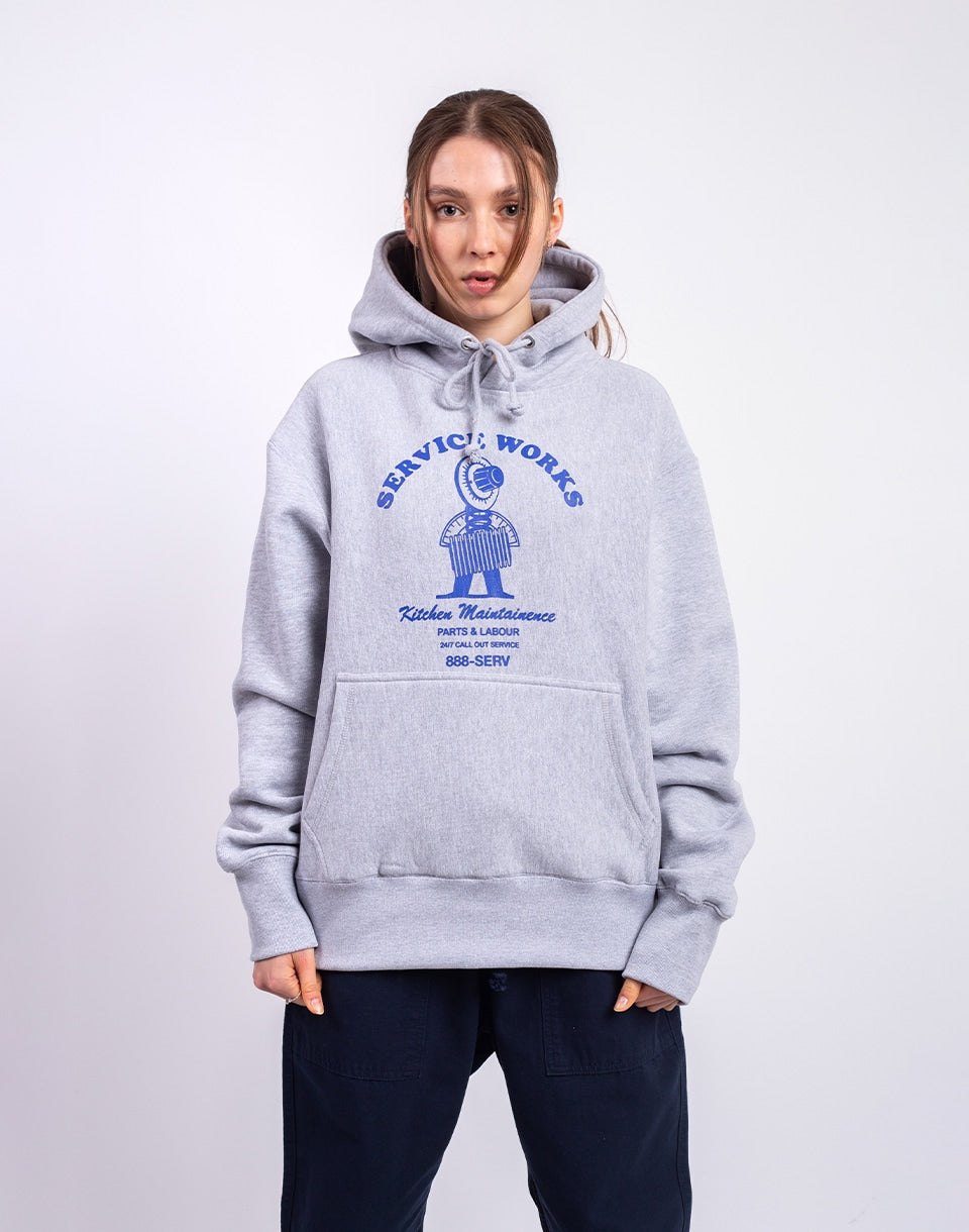Service Works Maintainence Hoodie - classic hoodie with graphic print on the chest in GOTS certified organic cotton.