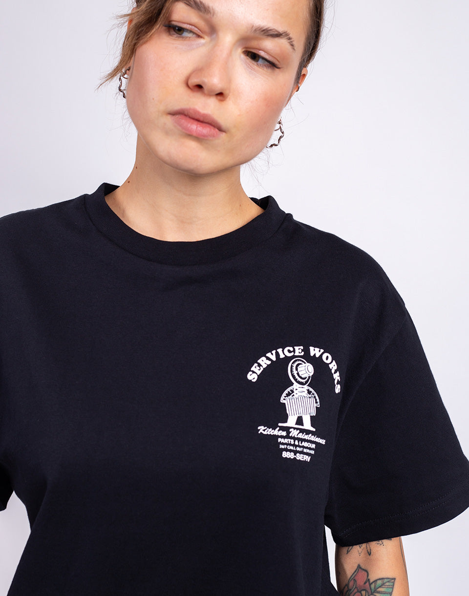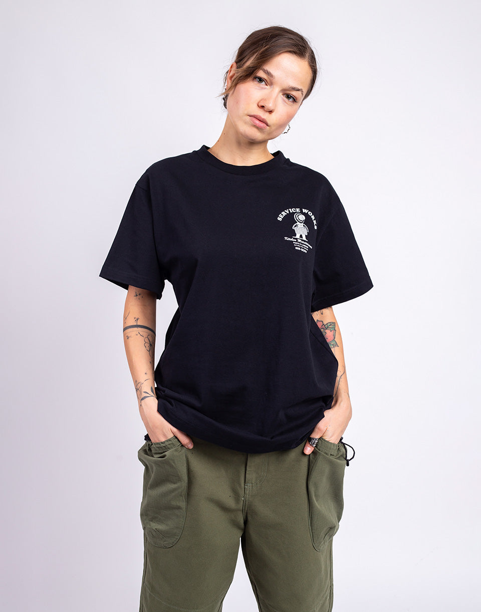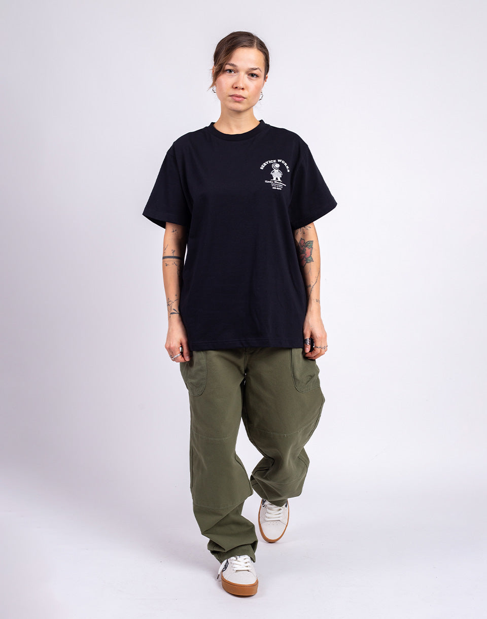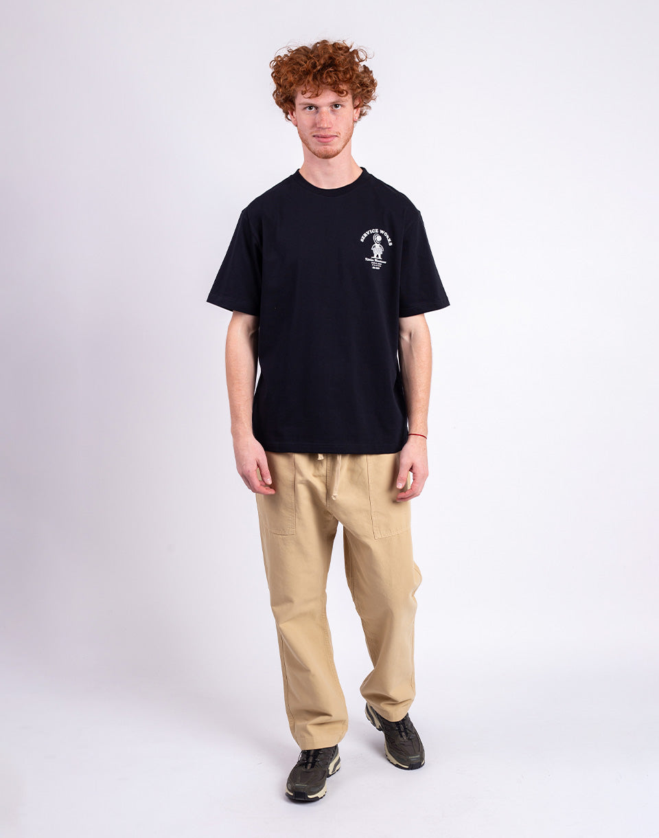 Service Works Maintainence Tee - a simple tee made from certified organic cotton with a small print on the chest and a large print on the back.
