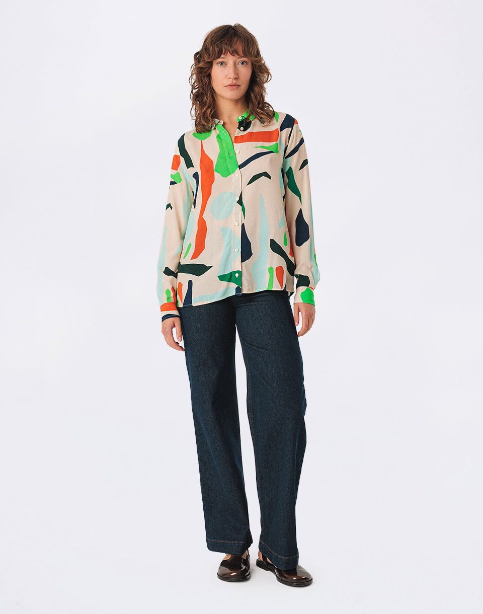 SKFK Asune Shirt - an elegant lightweight shirt with a colourful pattern in ECOVERO viscose that will brighten up your wardrobe.