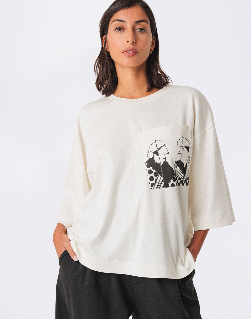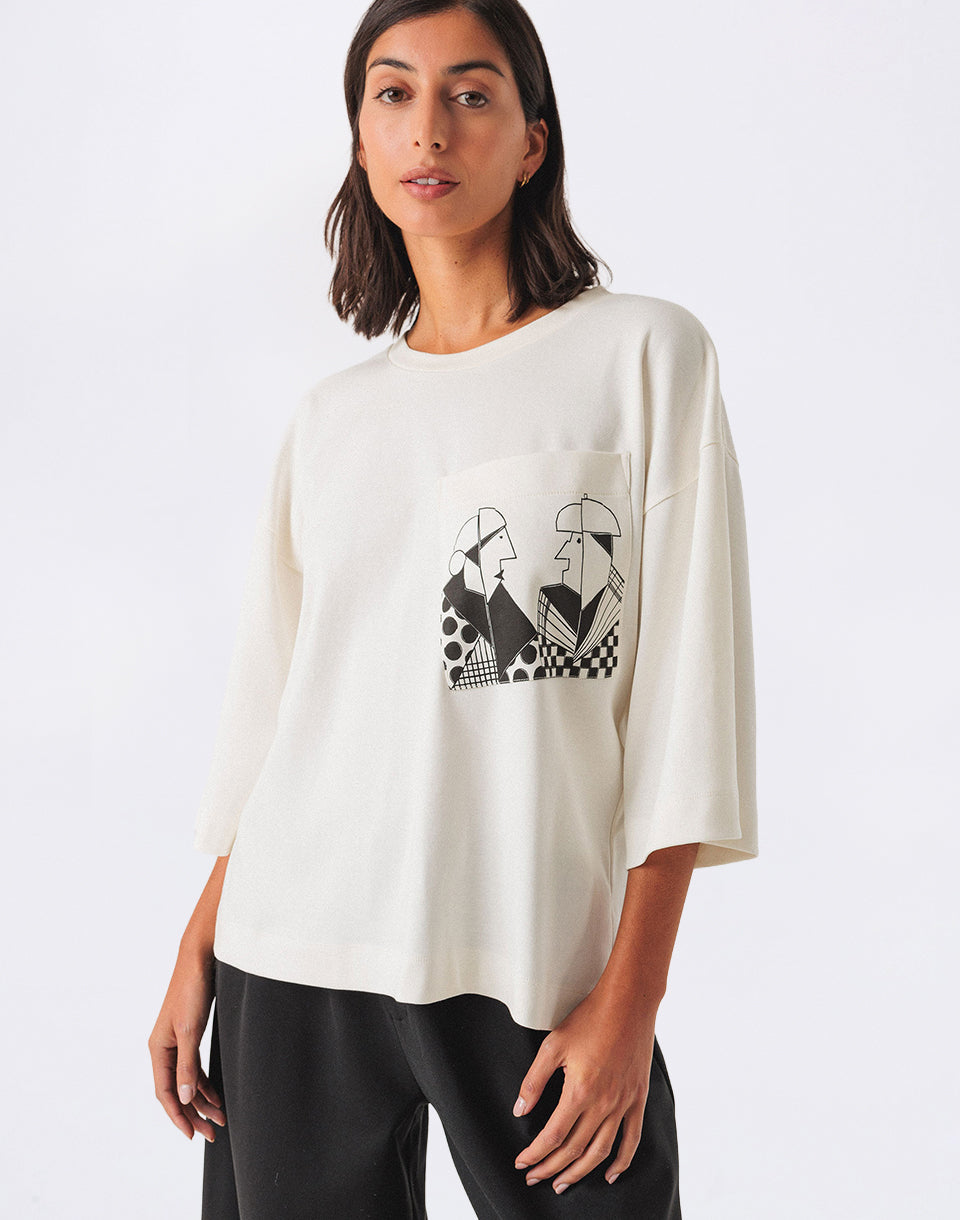 SKFK Hendaia - women's loose fit T-shirt in certified organic cotton with printed chest pocket.