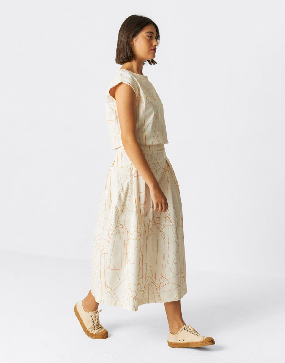 Jupe SKFK Irama GOTS - jupe midi avec grandes poches latérales en coton biologique avec certification GOTS.