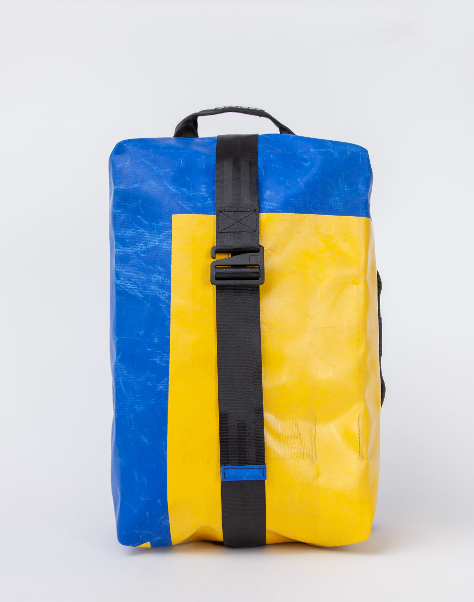 Freitag F511 Skipper - Suisse à main suisse unique à l'aide de bâches de camion et de ceintures de sécurité d'occasion.
