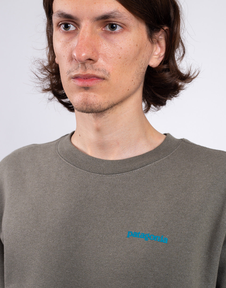 Sweat-shirt d'équipage Uprisal de Patagonia Fitz Roy - Sweat-shirt de canne à cannettes pour hommes Fair Trade à base de polyester recyclé et de tricot de coton.