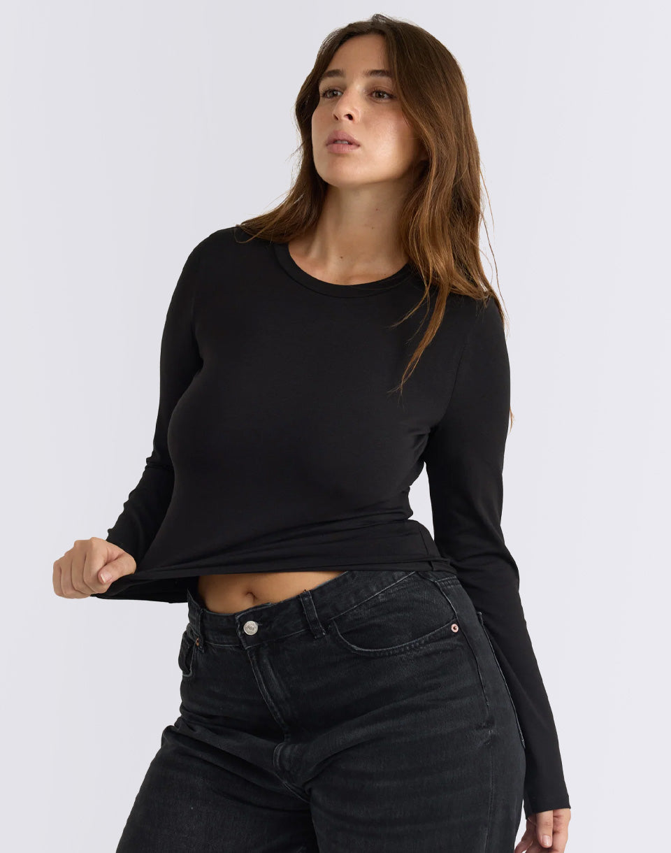 Bases organiques Tee à manches longues régulières quotidien - Un tee-shirt de mélange de coton-coton biologique avec un ajustement classique des années 90 qui deviendra un aliment de base dans votre garde-robe durable.