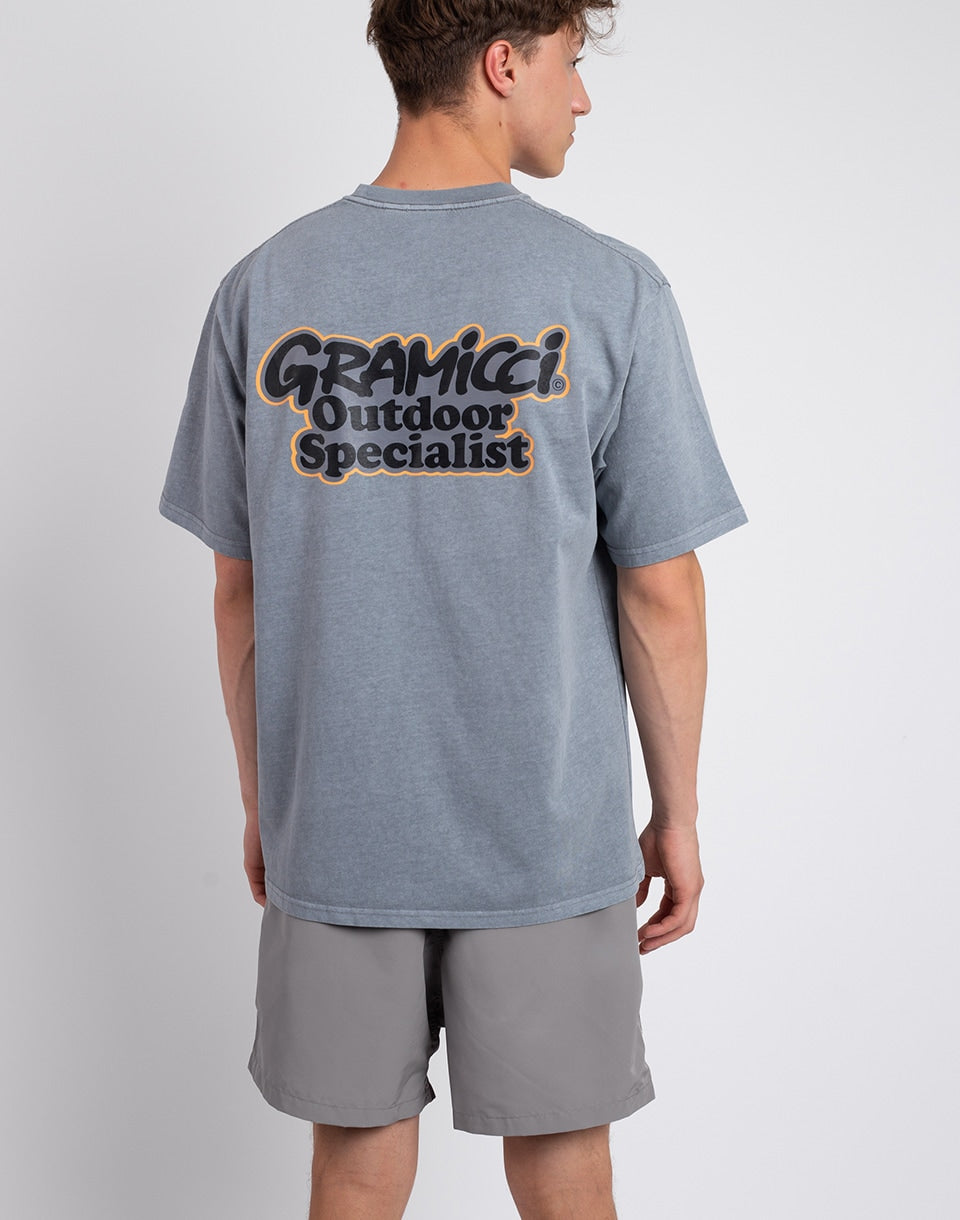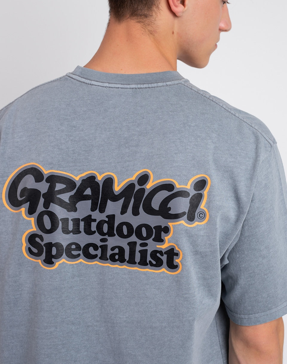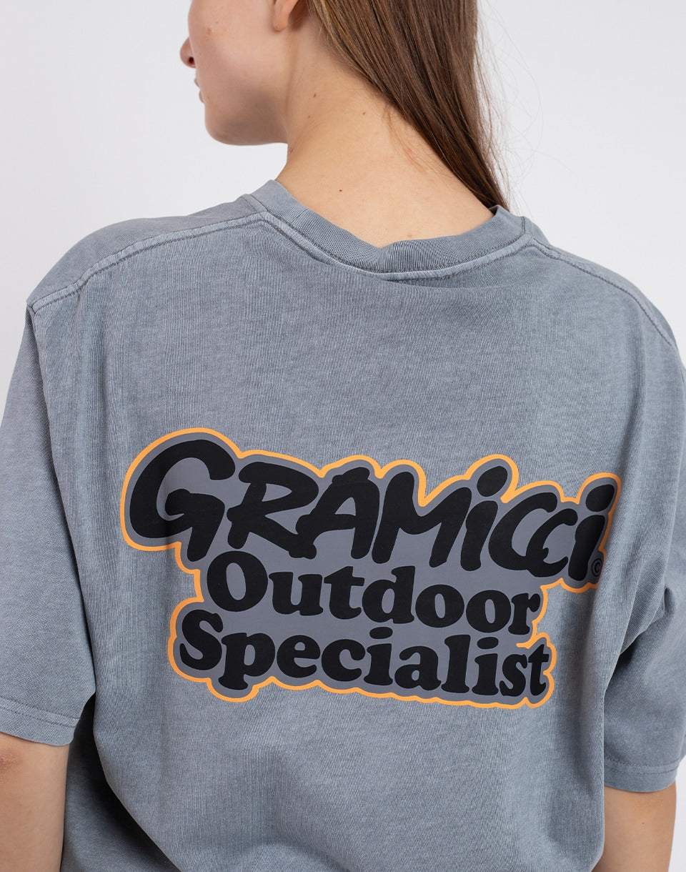 Gramicci Outdoor Specialist Tee - T-shirt unisexe lâche avec imprimé graphique au dos en coton biologique.