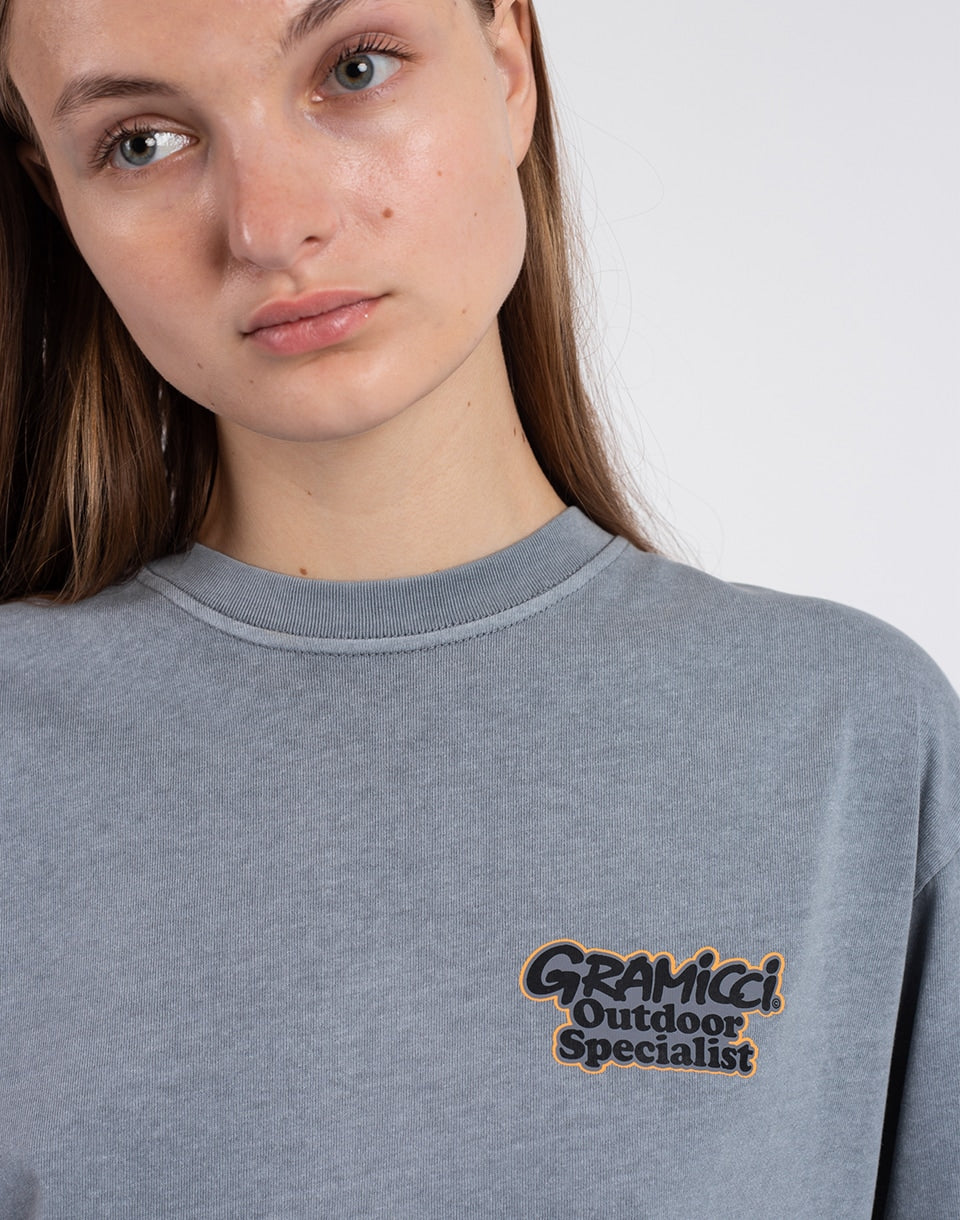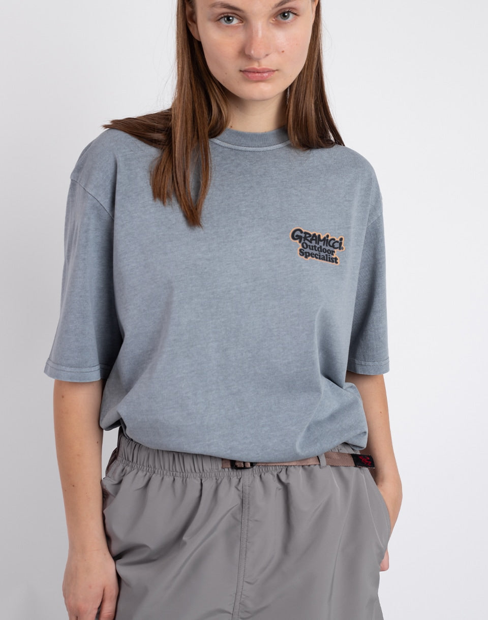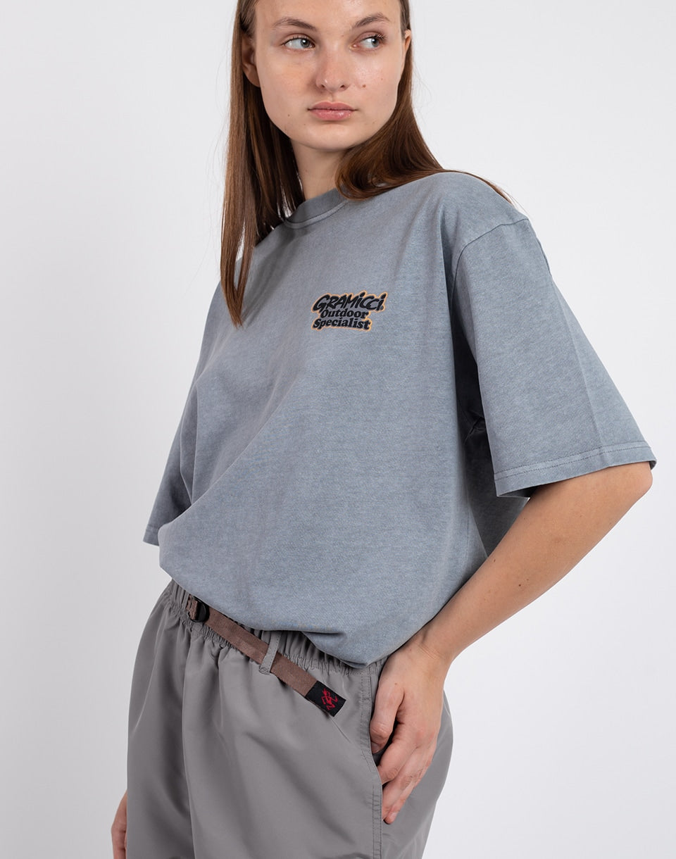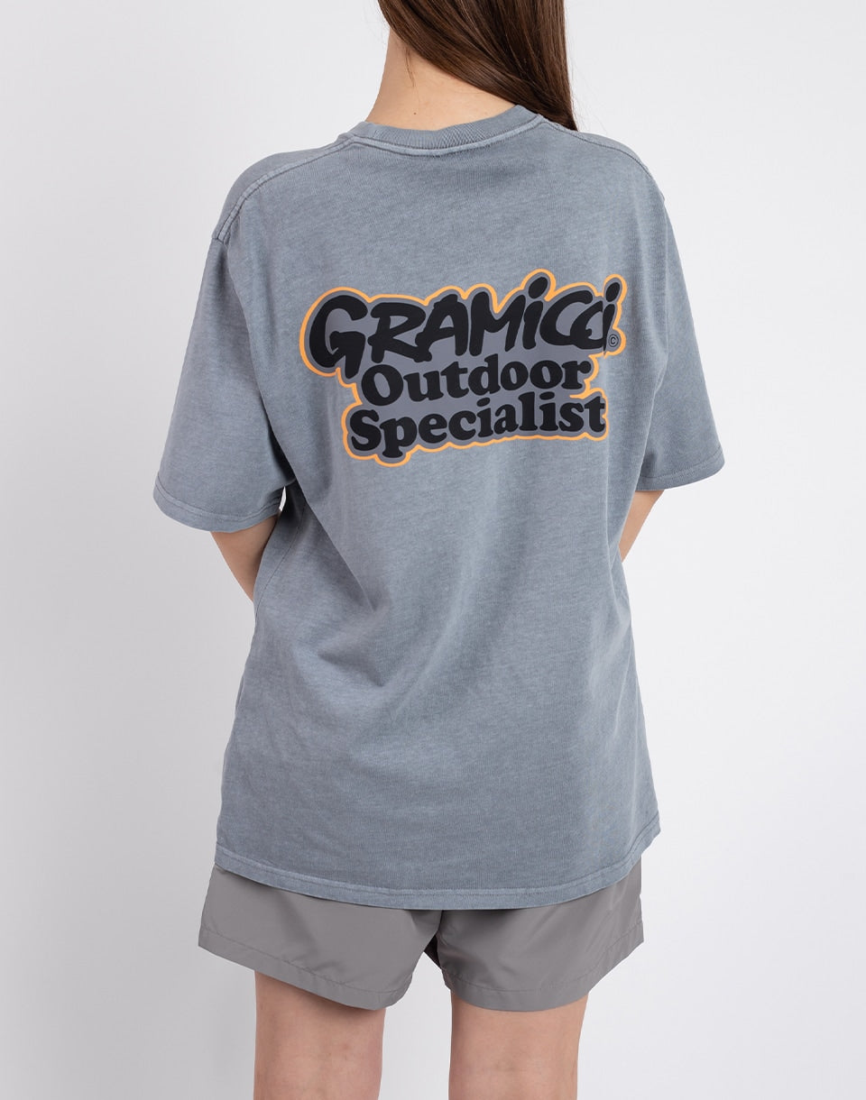 Gramicci Outdoor Specialist Tee - T-shirt unisexe lâche avec imprimé graphique au dos en coton biologique.