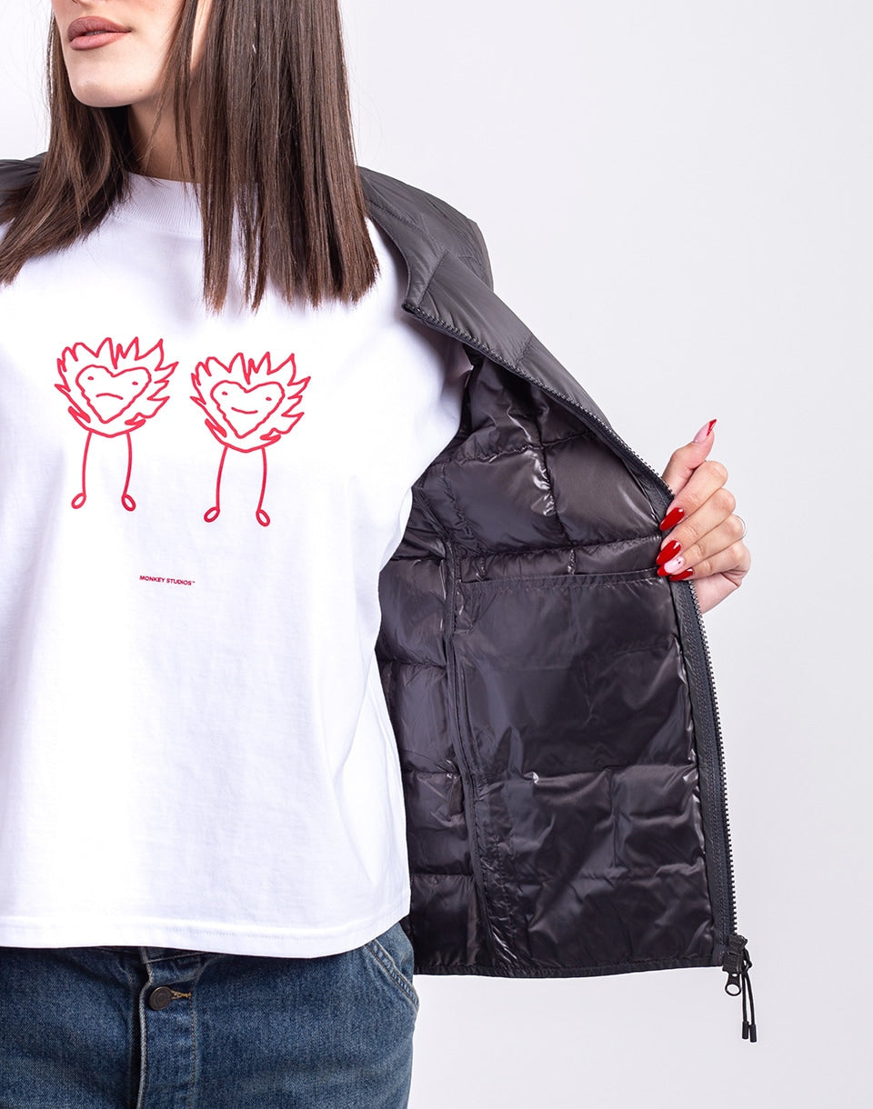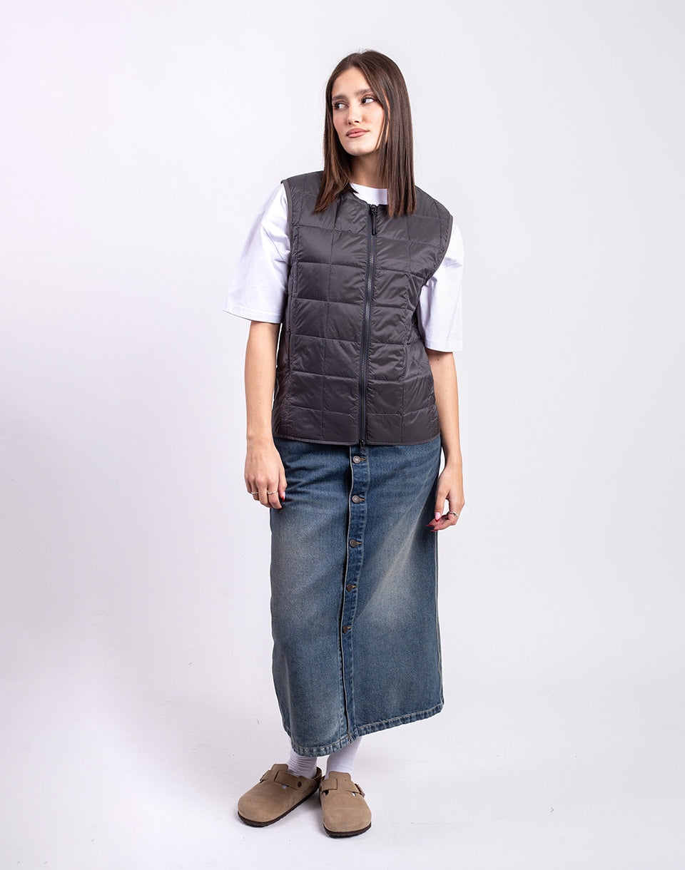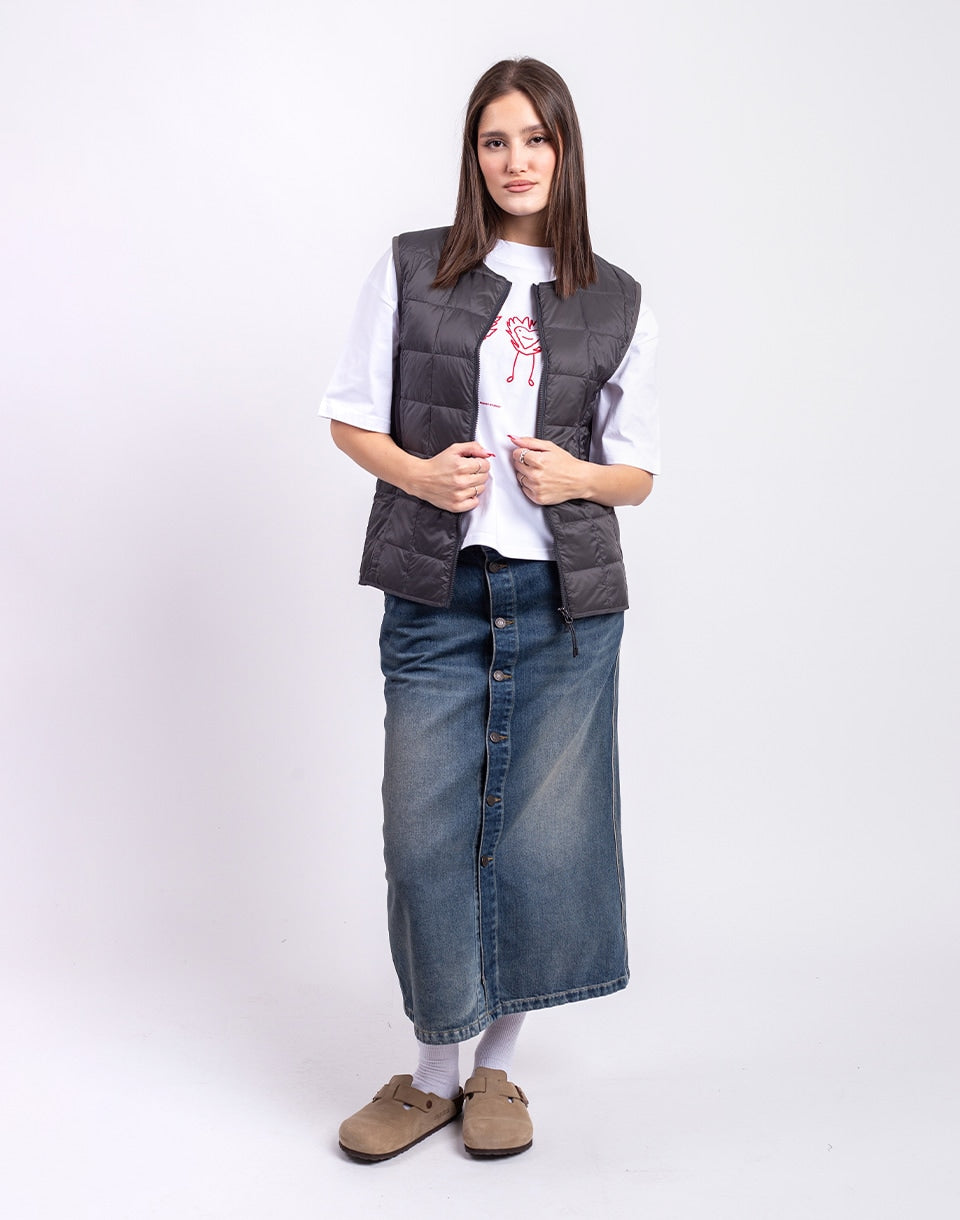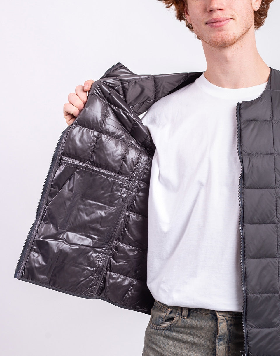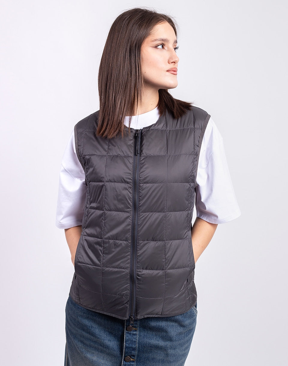 TAION Crew Neck Zip Down Vest - a lightweight, warm down vest in a clean minimalist style, perfect for layering throughout autumn and winter.