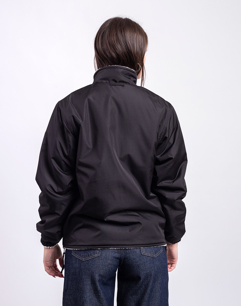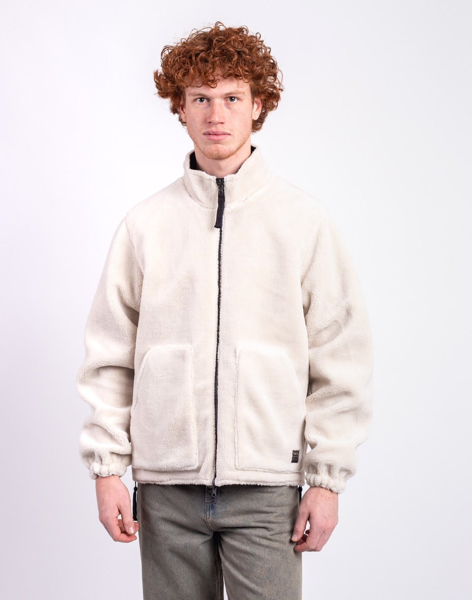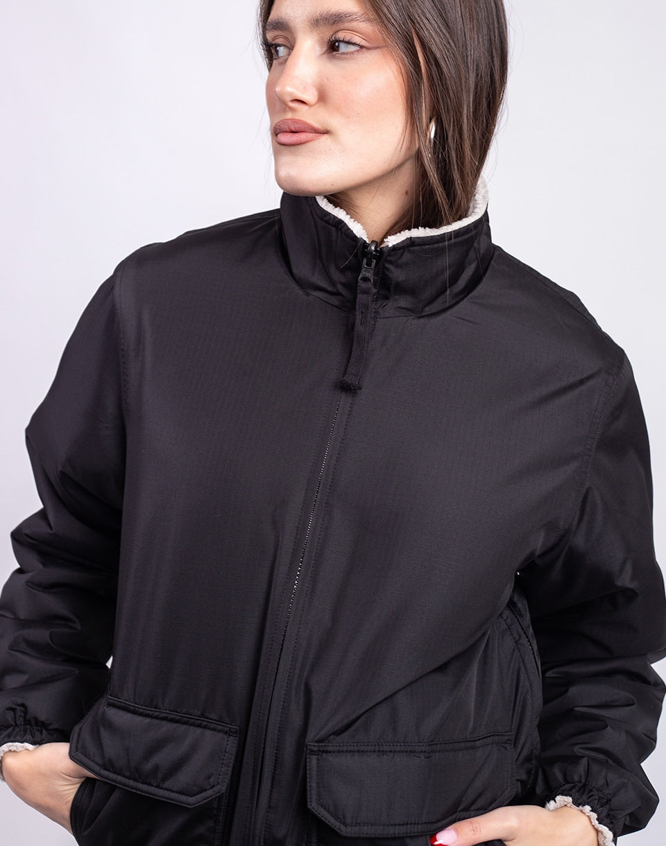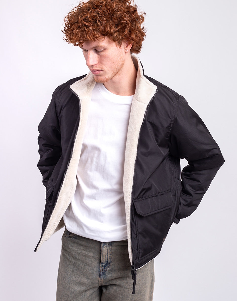 TAION Non Down Military Reversible Boa Hi Neck Jacket - a reversible jacket with a ripstop layer and a warm boa fleece that easily adjusts to the weather and layering thanks to a high collar and side zippers.