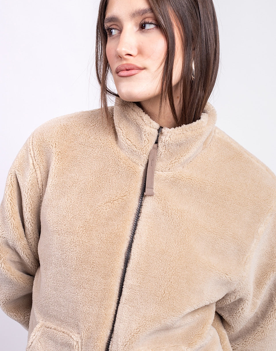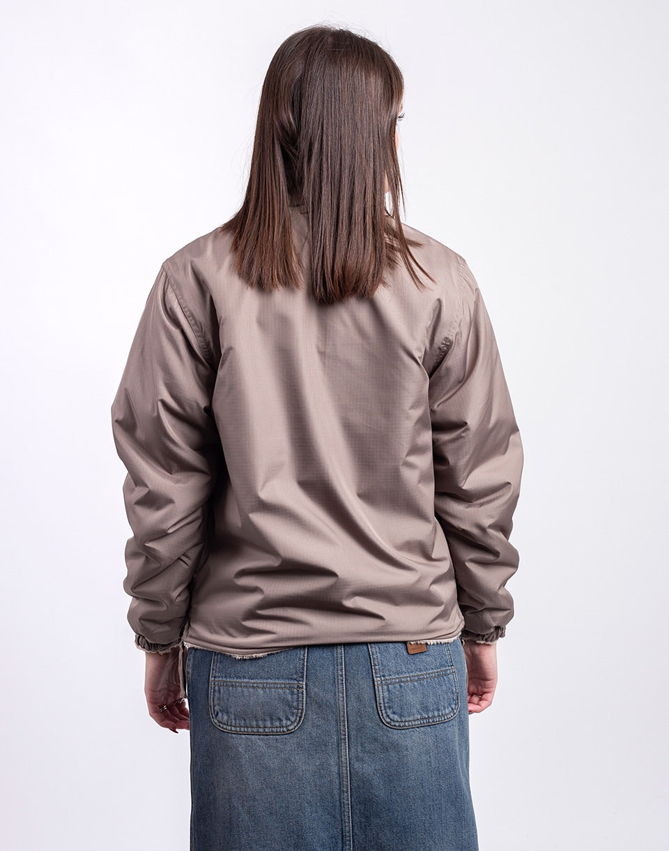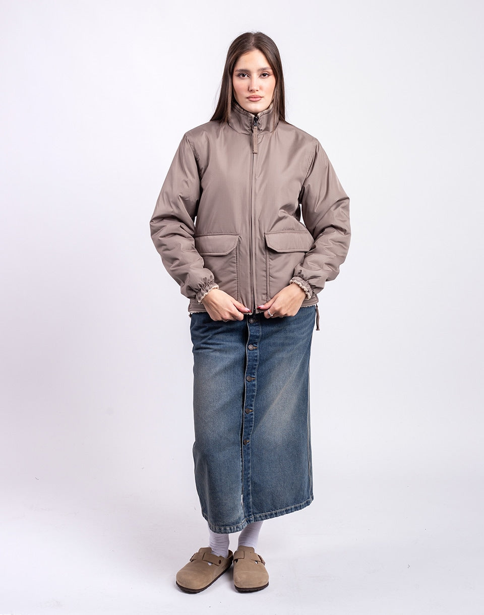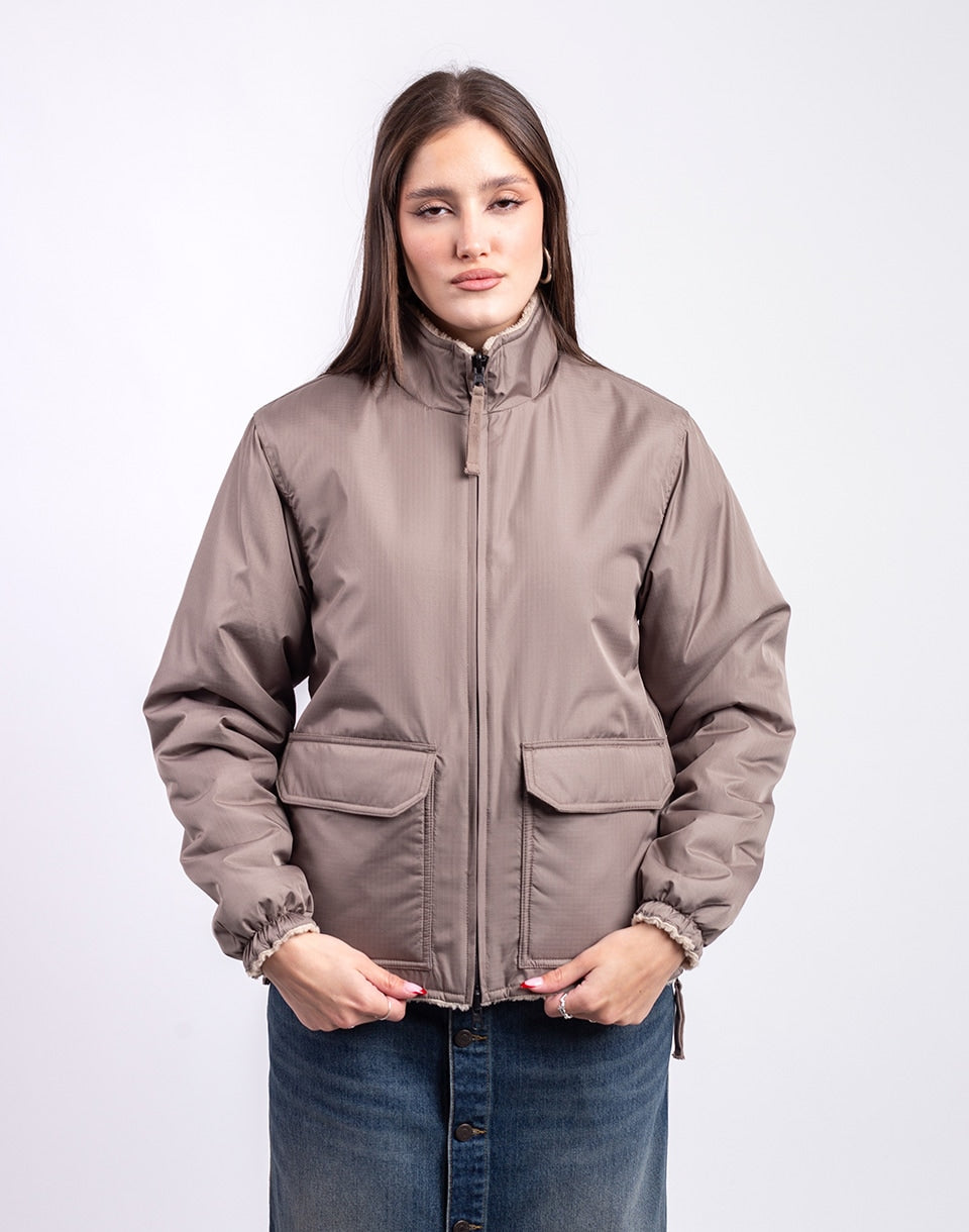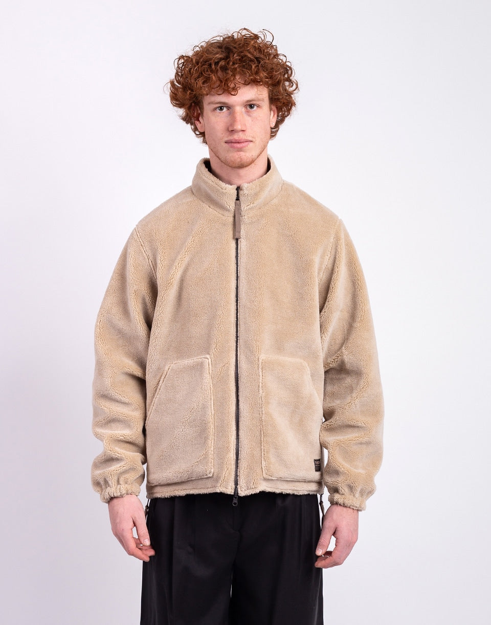 TAION Non Down Military Reversible Boa Hi Neck Jacket - a reversible jacket with a ripstop layer and a warm boa fleece that easily adjusts to the weather and layering thanks to a high collar and side zippers.
