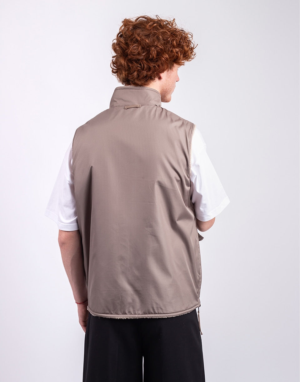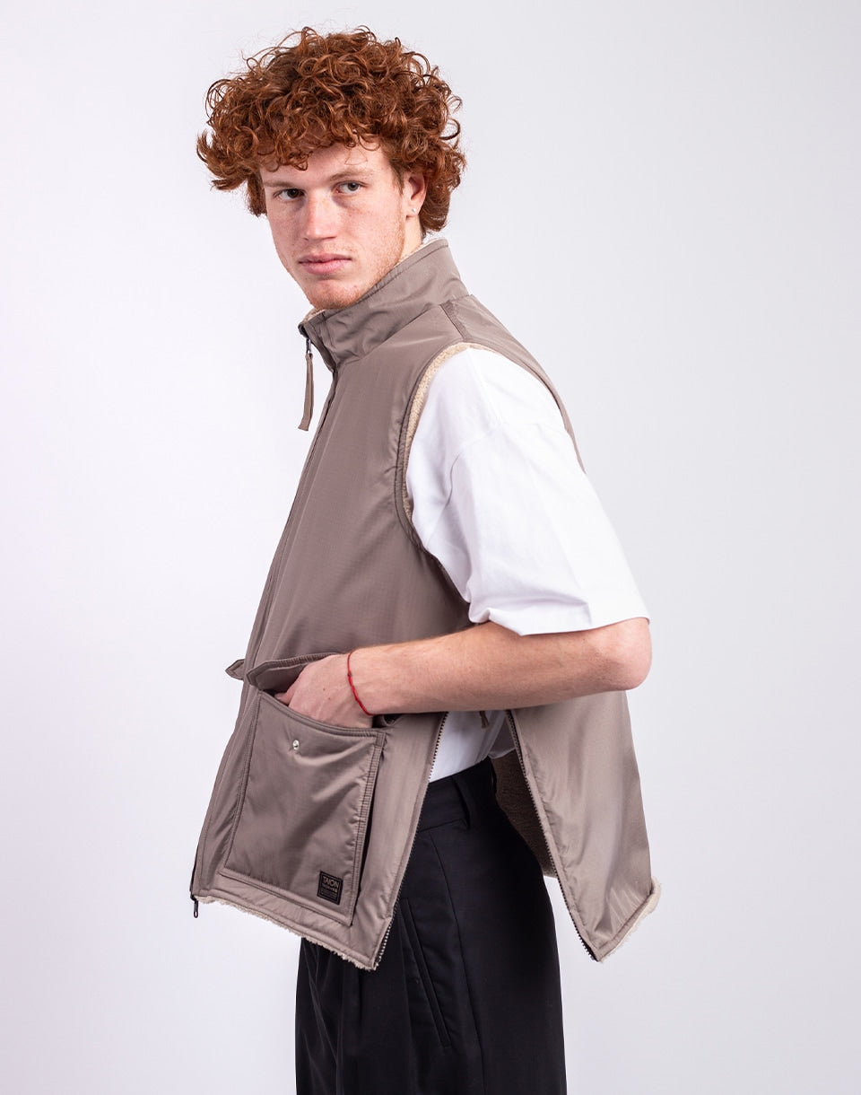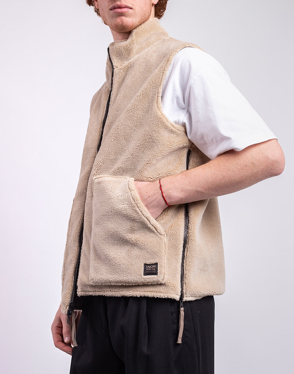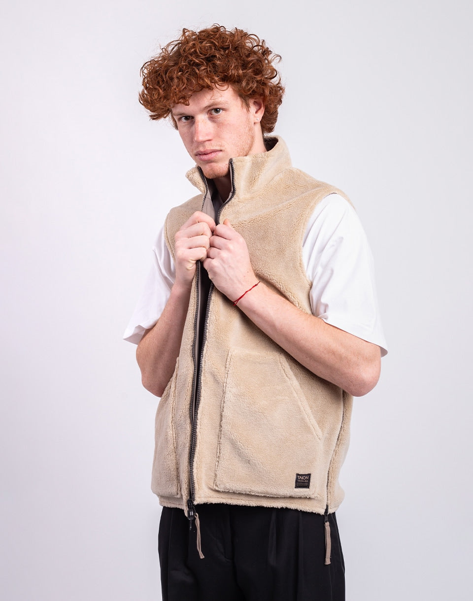 TAION Non Down Military Reversible Boa Hi Neck Vest - a reversible unisex vest in a comfortable fit, ideal for layering or wearing alone.