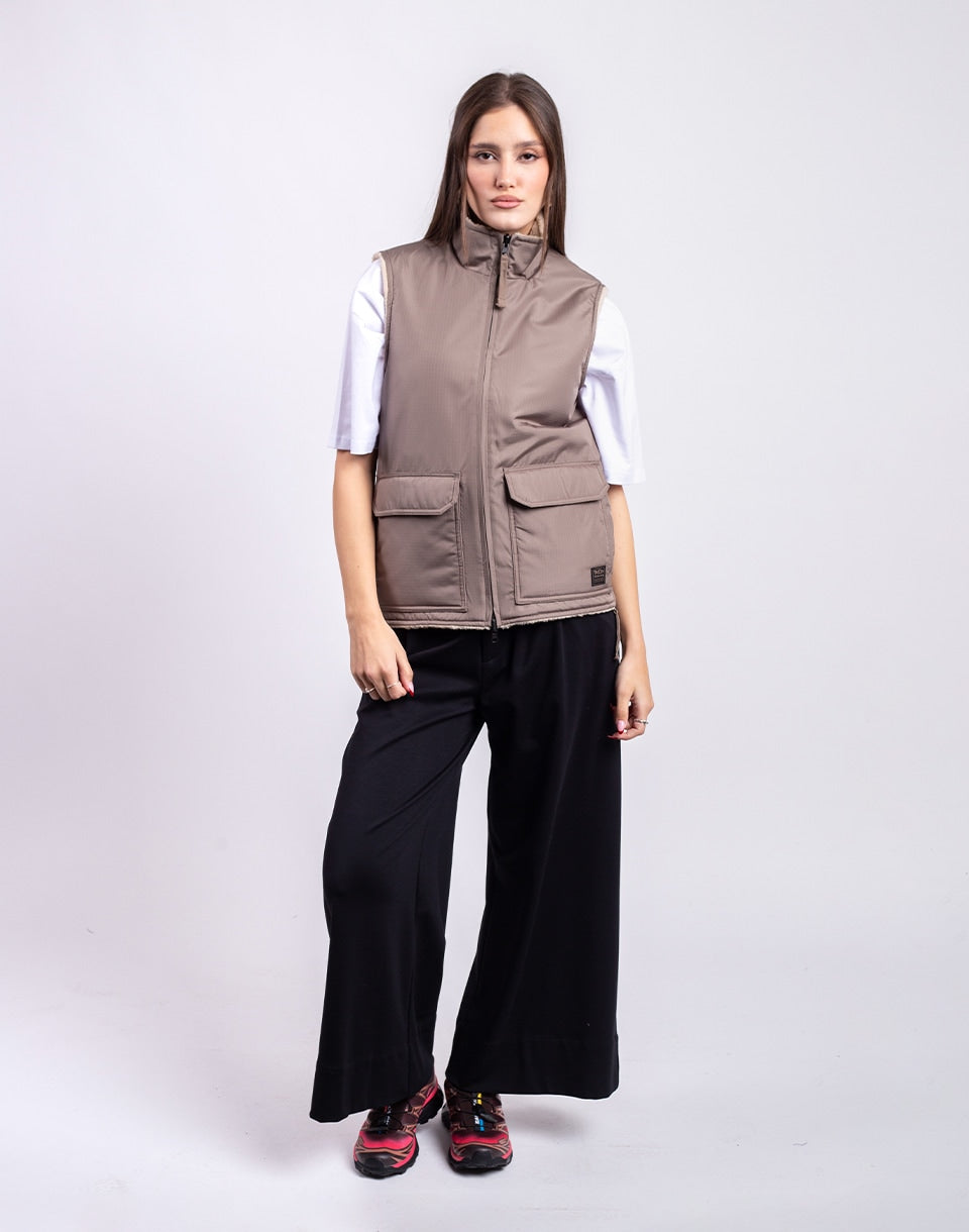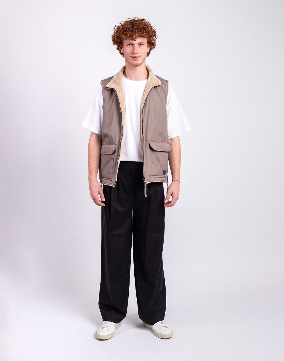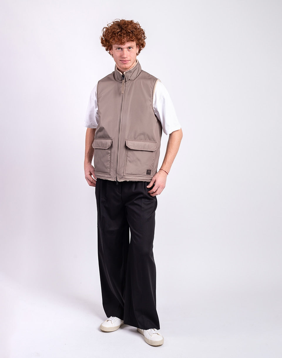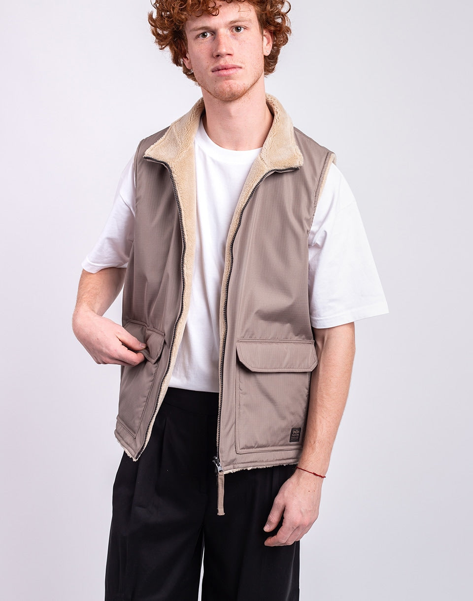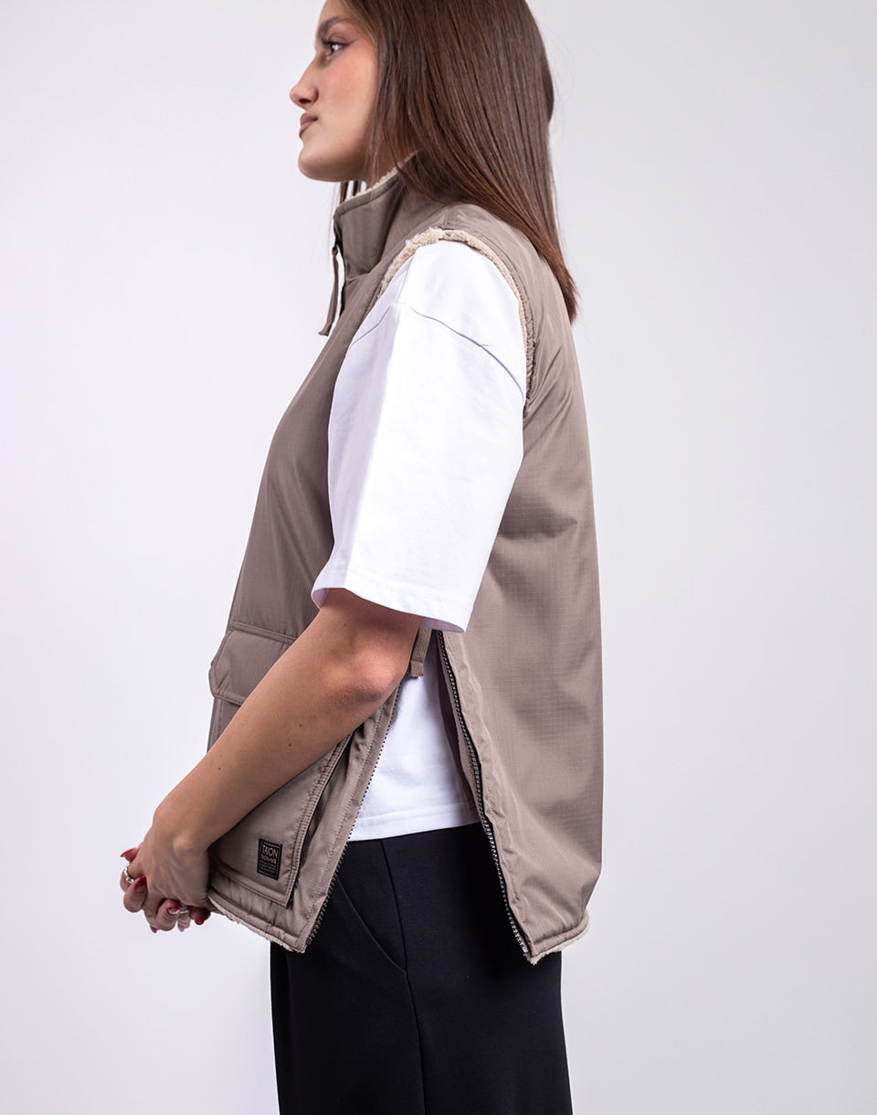 TAION Non Down Military Reversible Boa Hi Neck Vest - a reversible unisex vest in a comfortable fit, ideal for layering or wearing alone.