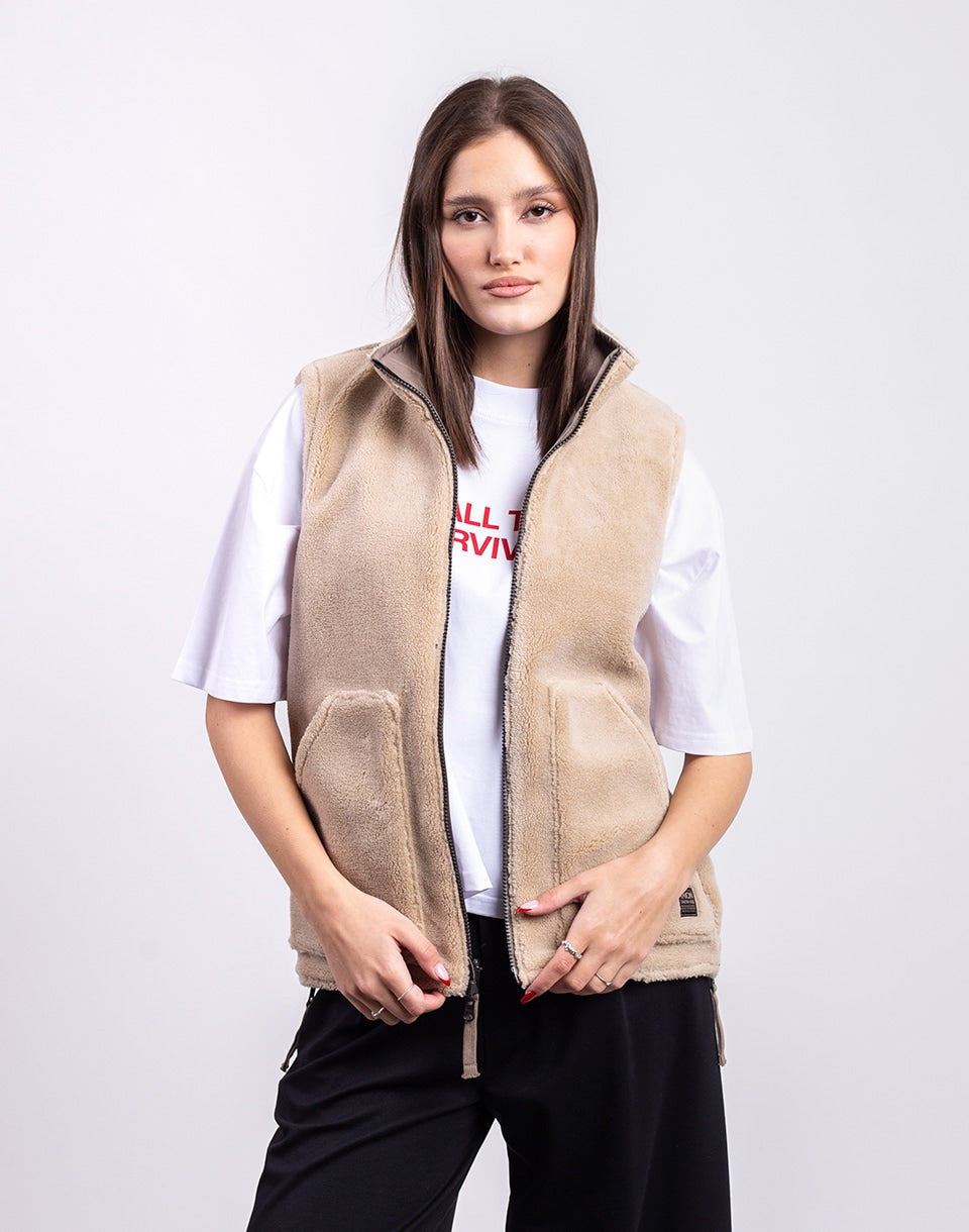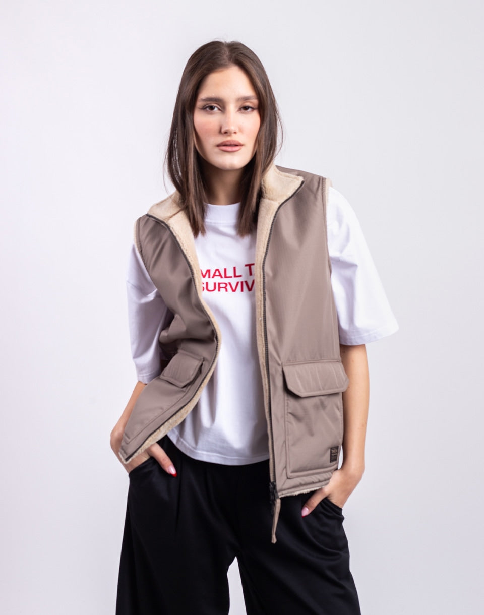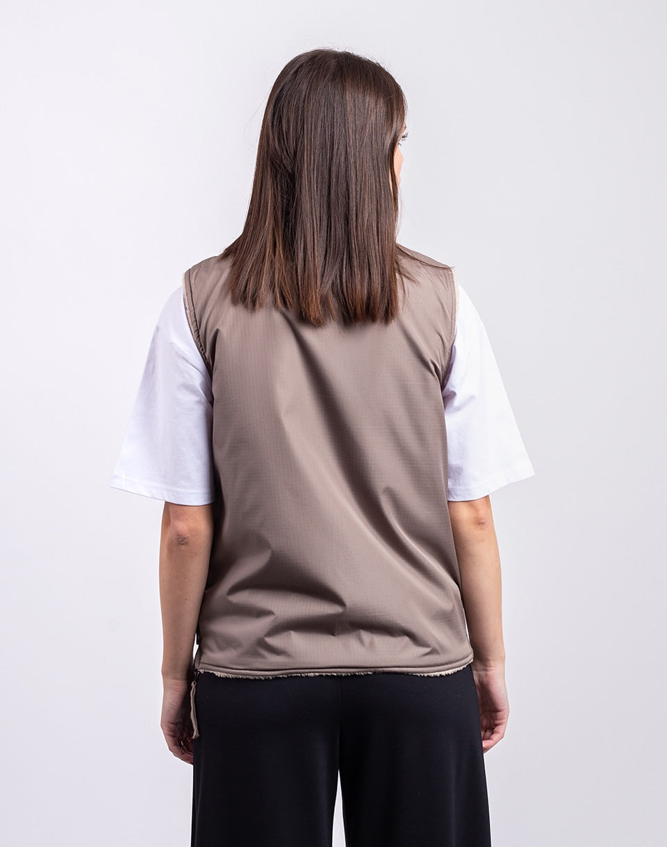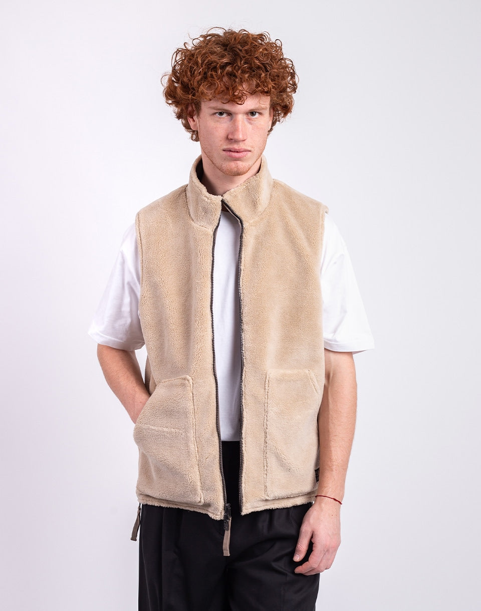 TAION Non Down Military Reversible Boa Hi Neck Vest - a reversible unisex vest in a comfortable fit, ideal for layering or wearing alone.