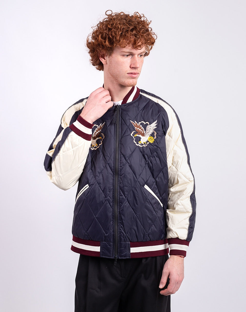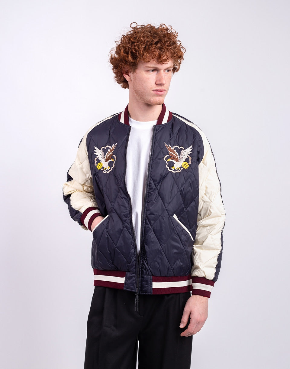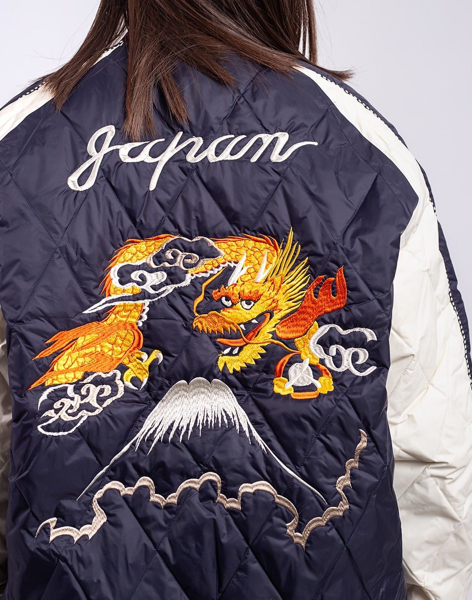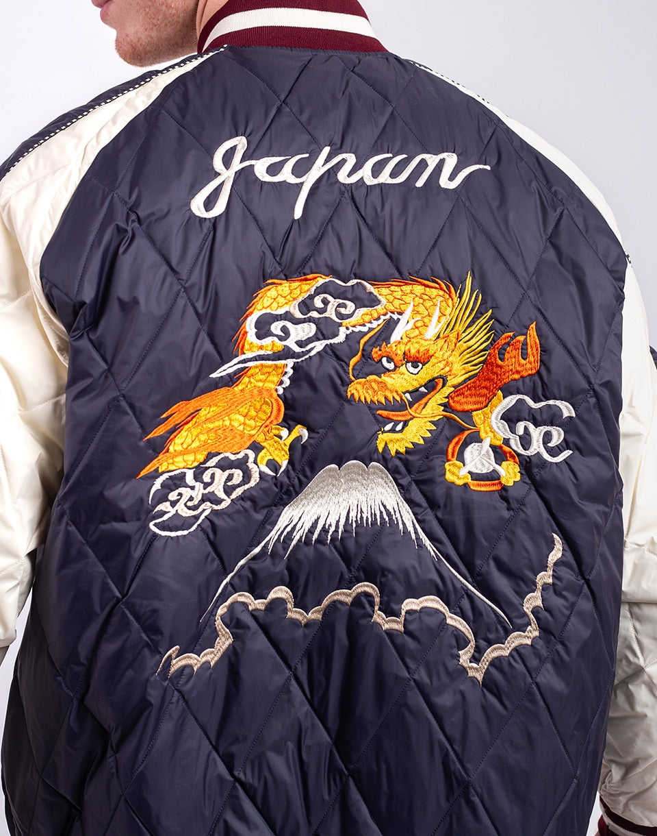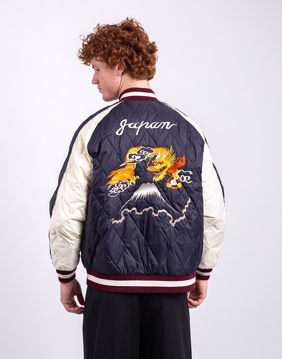 TAION Reversible Skajan Down Jacket - reversible down jacket inspired by the iconic sukajan jackets, with velour embroidery on one side and a quilted down design on the other.
