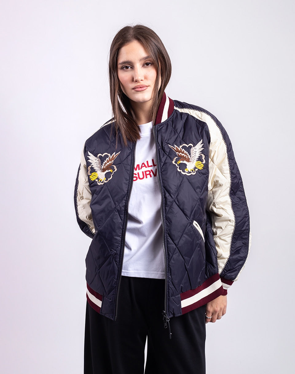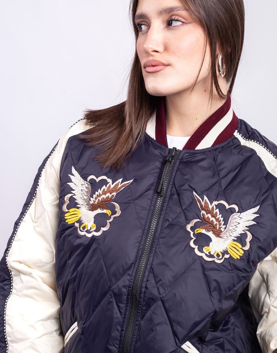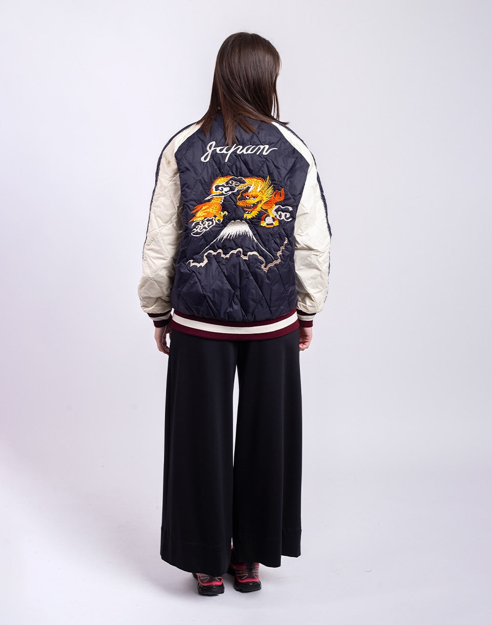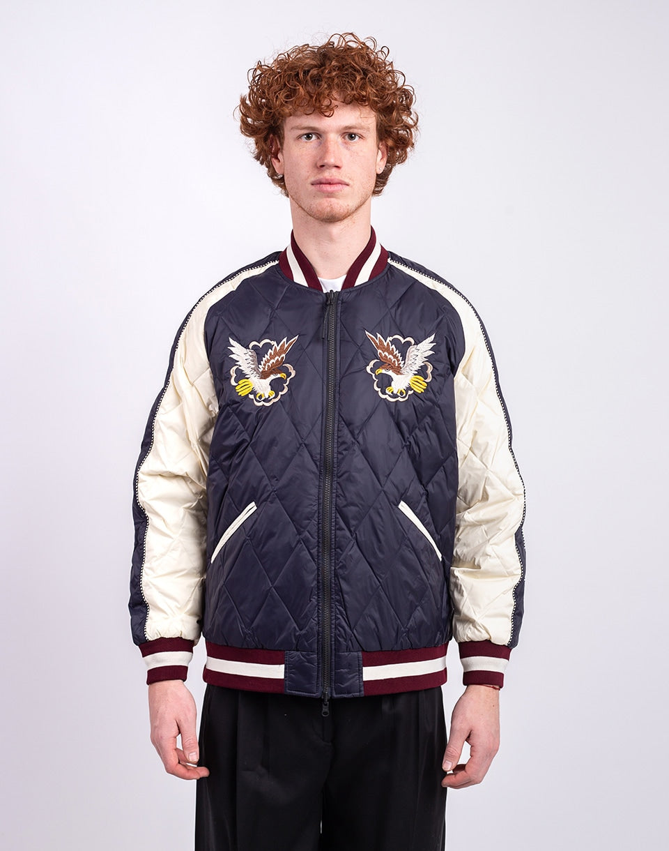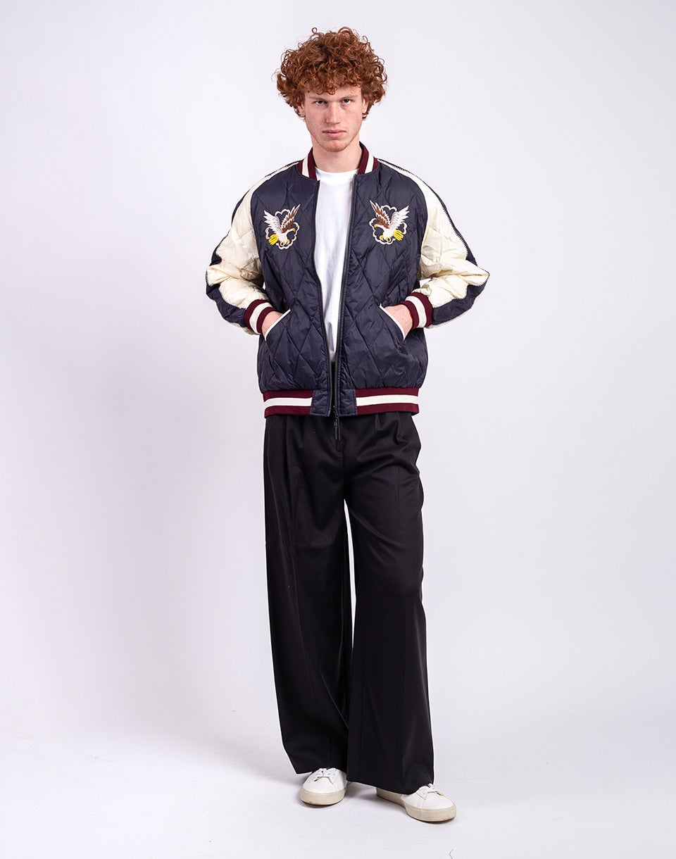 TAION Reversible Skajan Down Jacket - reversible down jacket inspired by the iconic sukajan jackets, with velour embroidery on one side and a quilted down design on the other.