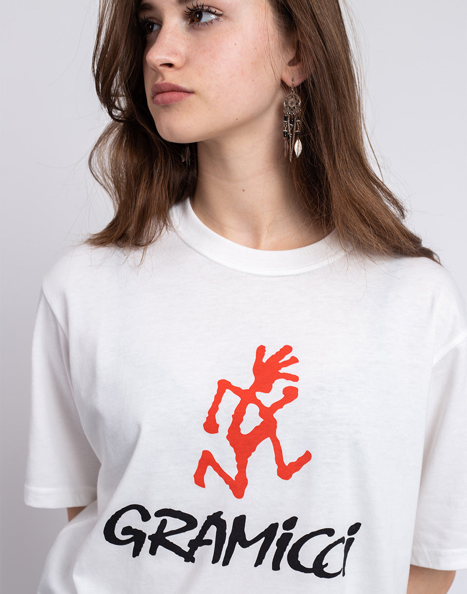 Le tee-shirt de logo Gramicci est un t-shirt à séchage rapide à partir d'un mélange de polyester et de coton recyclé qui convient à toute activité de plein air.