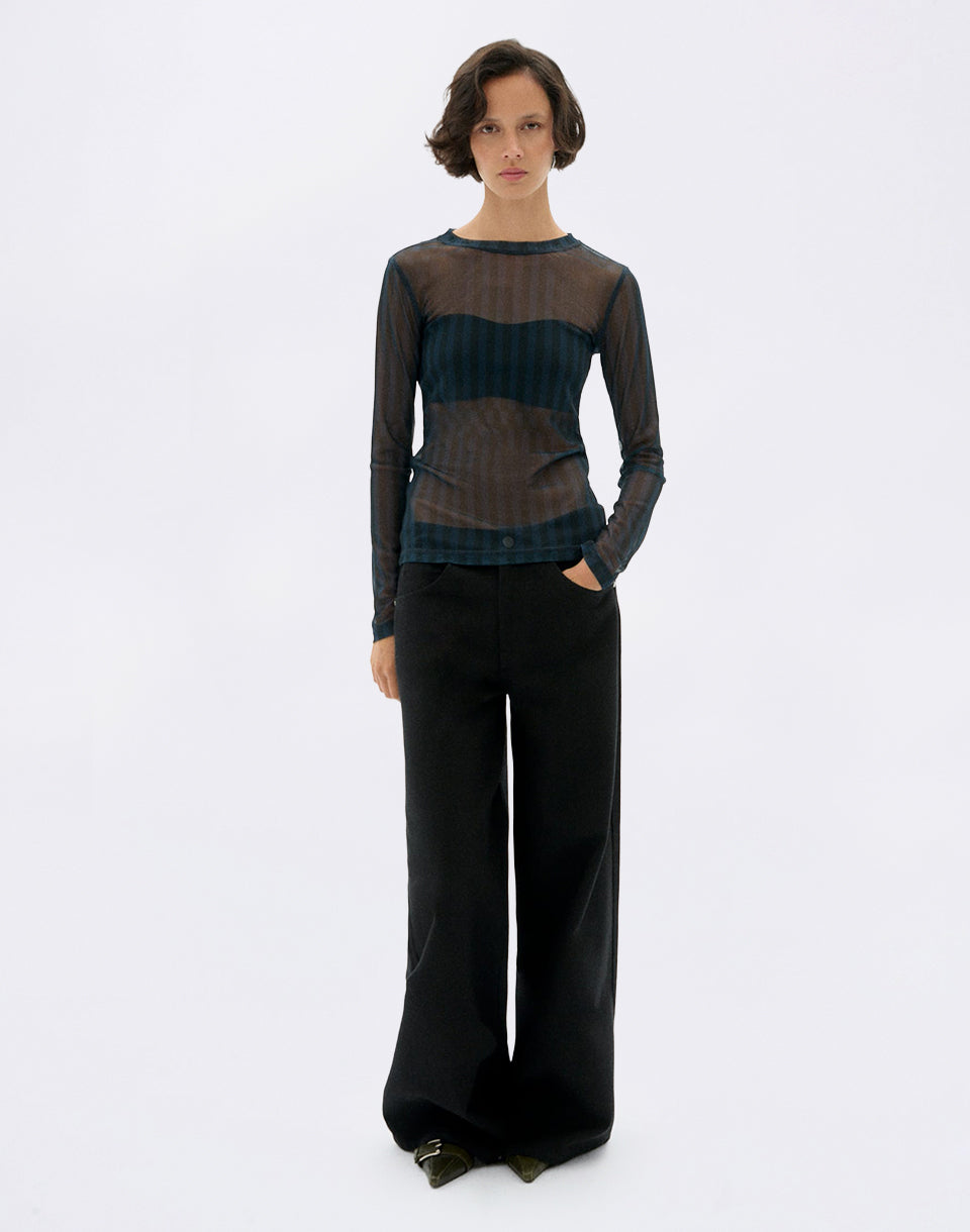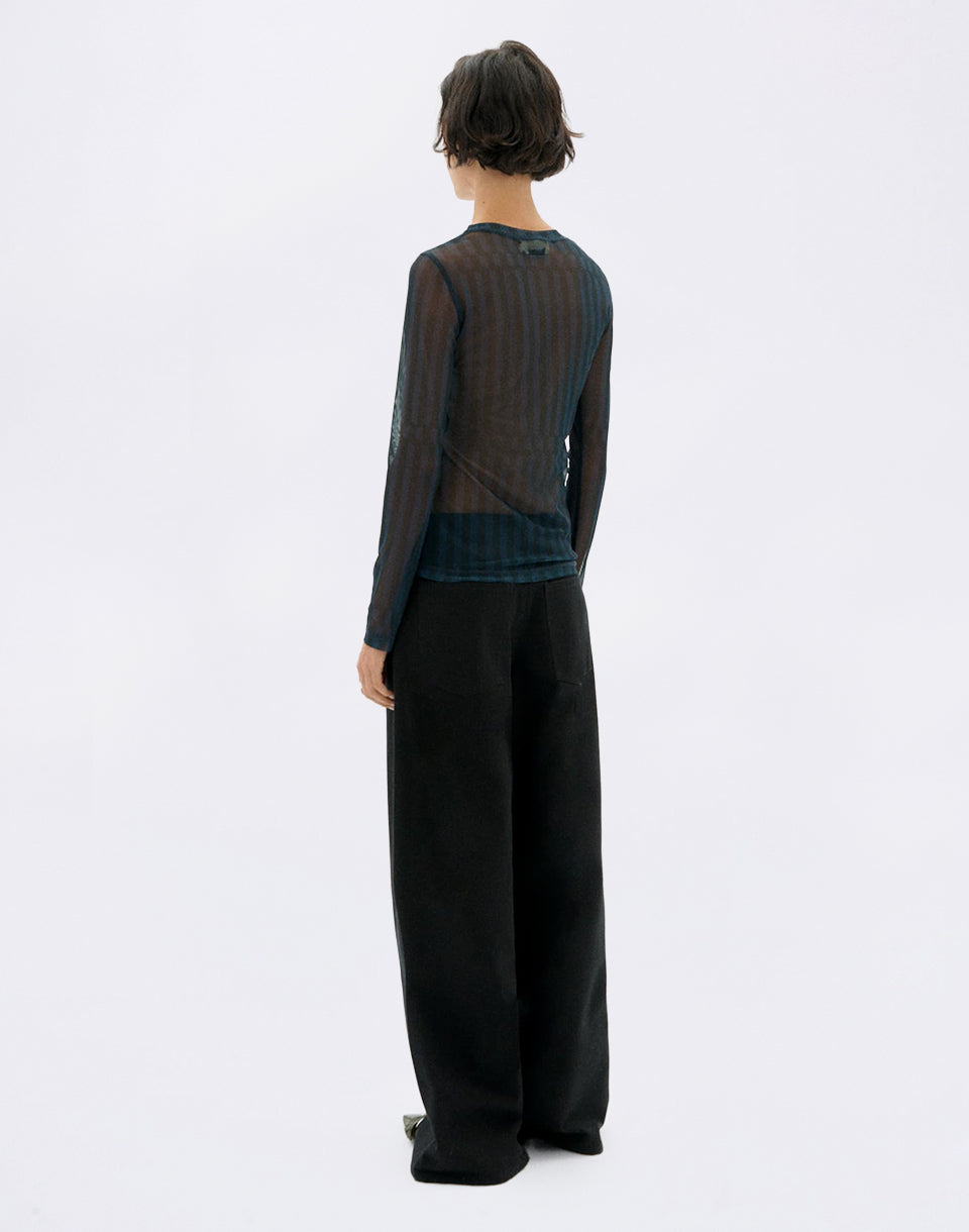 Thinking MU Esqué Blue Tere Top - elegant translucent recycled polyester top with original print by designer Julia Esqué