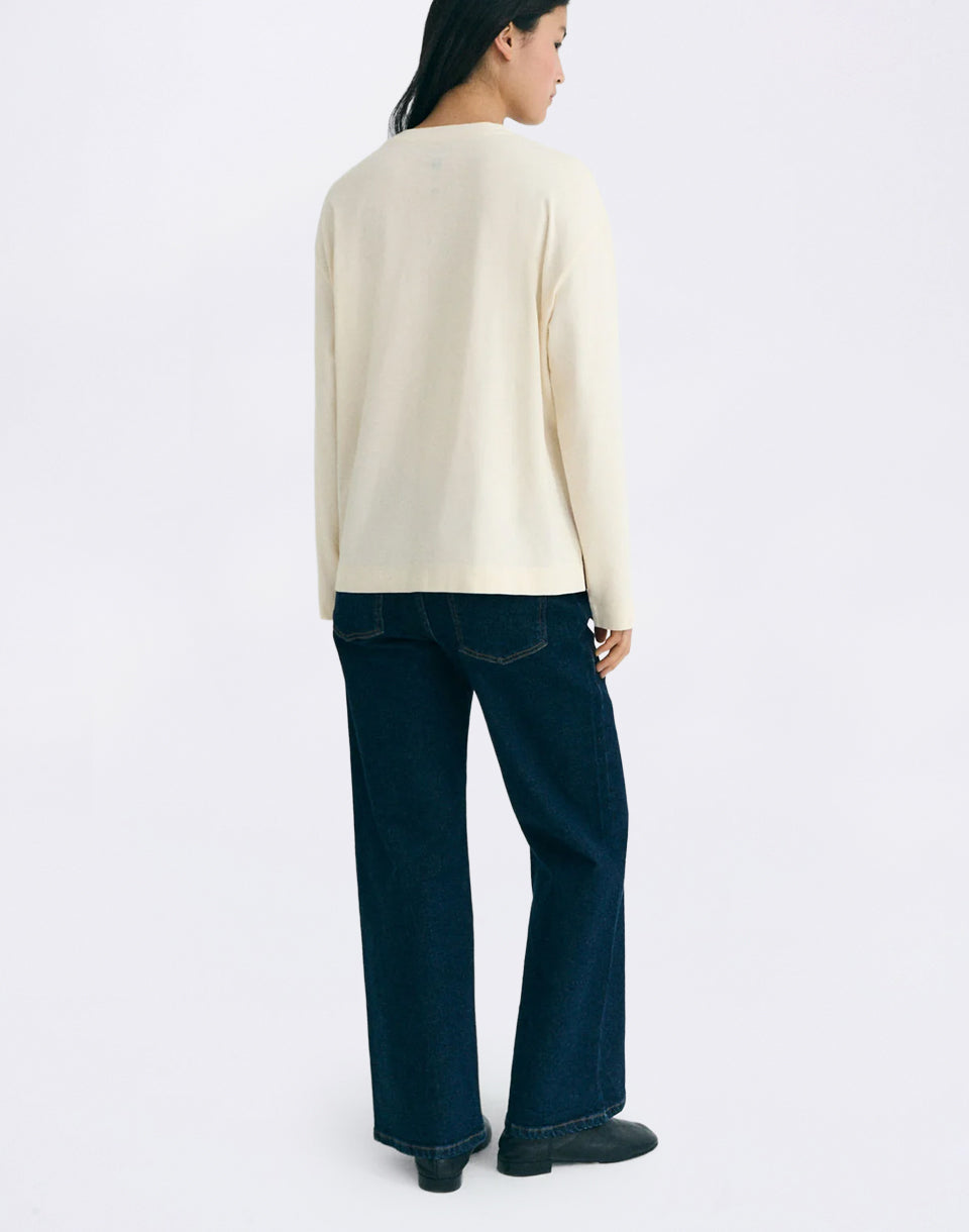 Thinking MU Flower Contrast Emily Tee - Long sleeved organic cotton tee with a subtle floral motif that will brighten up any outfit.