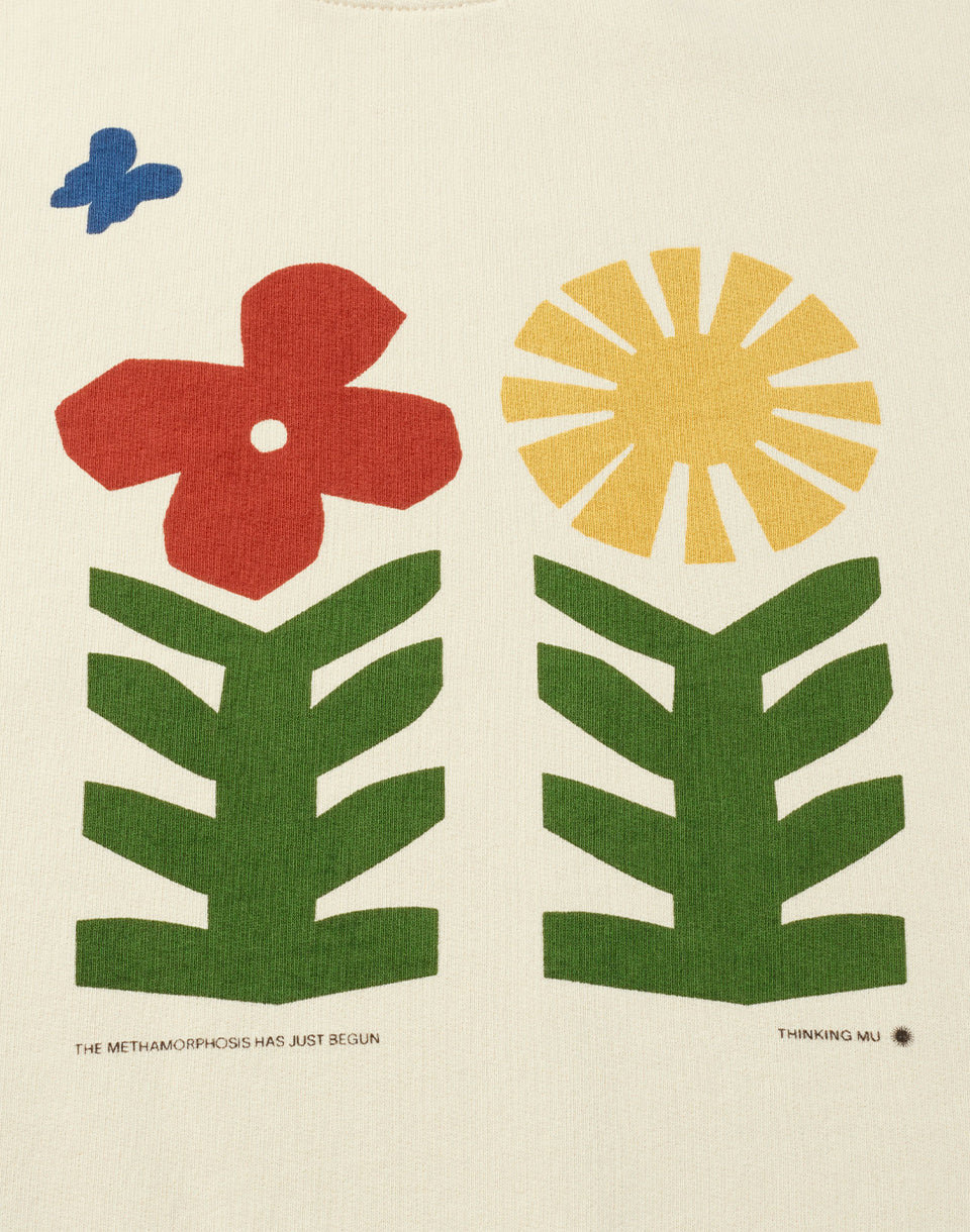 Penser à Sweat-shirt ivoire de Mu Methamorphosis - Sweat-shirt de canne d'équipage pour femmes avec imprimé graphique sur la poitrine, soutenu par une marque durable d'Espagne.