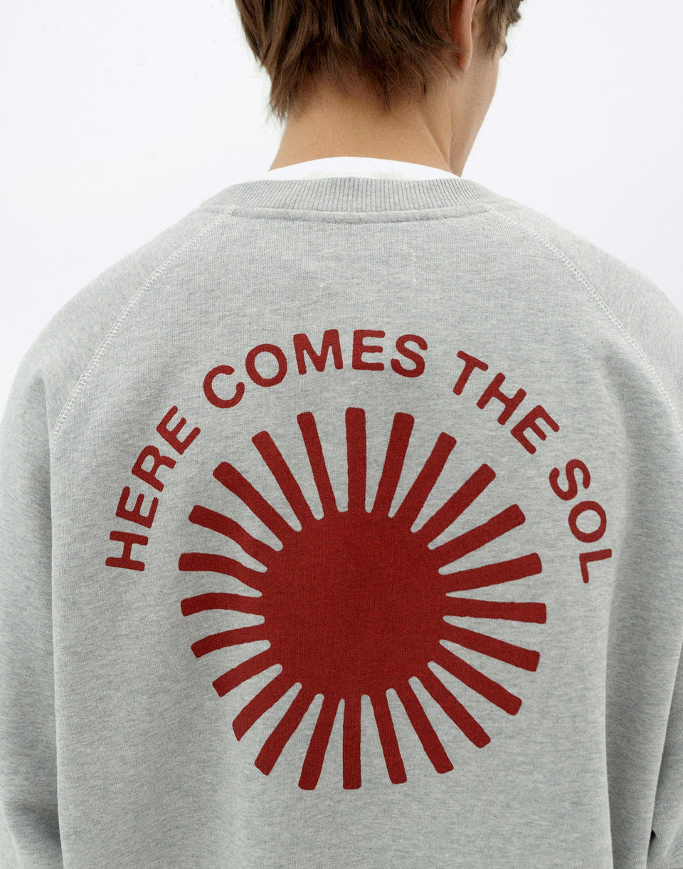 Sweat-shirt Thinking MU Pepe Sun Retro Gray - sweat-shirt à col rond avec imprimé graphique au dos, fabriqué en coton biologique certifié GOTS.