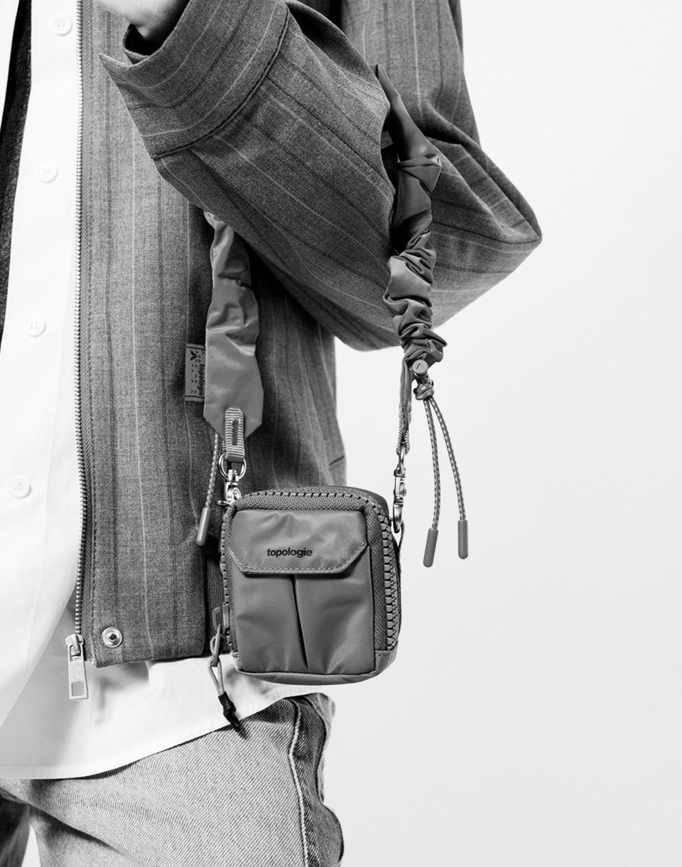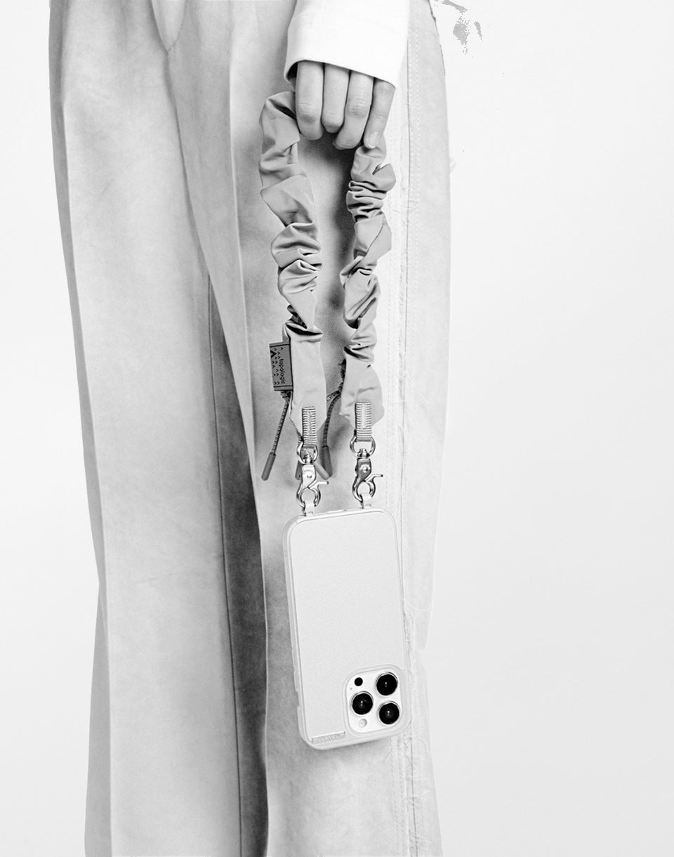 Topology Bungee Wrist Strap - a short strap in a comfortable and eye-catching design that easily turns the Bottle Sacoche case into a chic handbag.