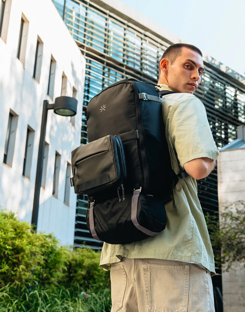 Sac à dos Tropicfeel Nest : un sac à dos urbain innovant, modulable et polyvalent, fabriqué à partir de matériaux recyclés, extensible de 4 litres supplémentaires grâce à une poche inférieure astucieuse. De plus, sa taille et son design sont parfaits pour voyager léger en avion.